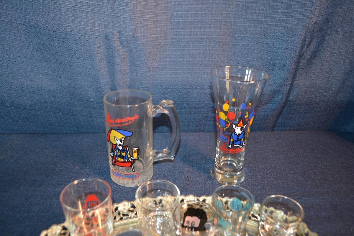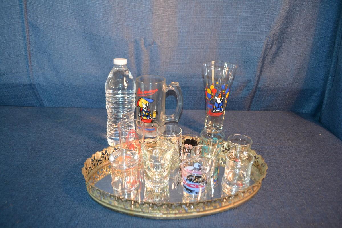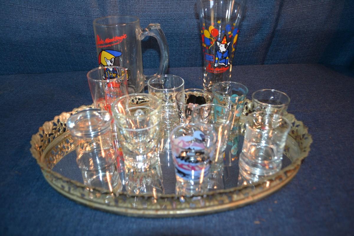 LOT 159 variety of shot glasses and glasses Plus mirror tray
