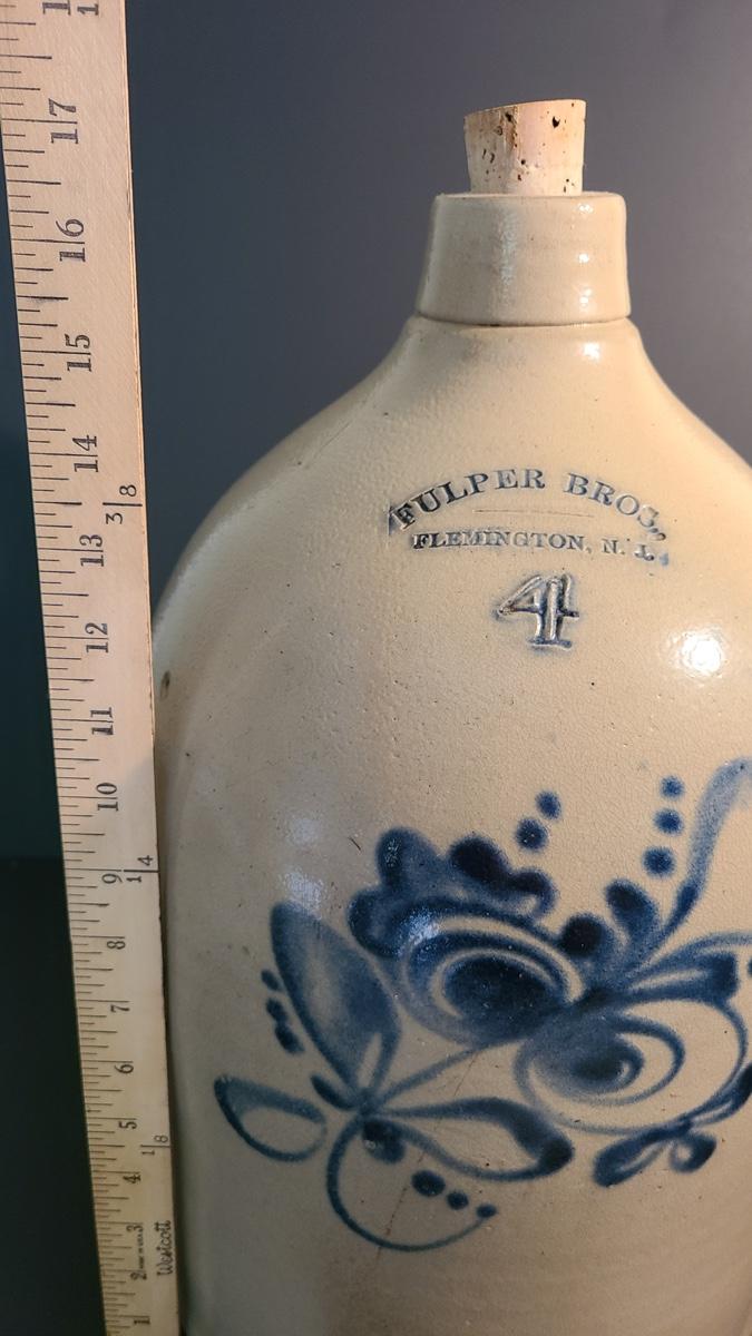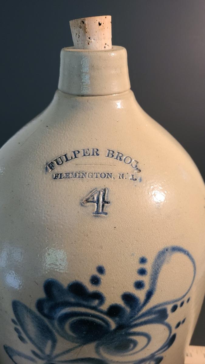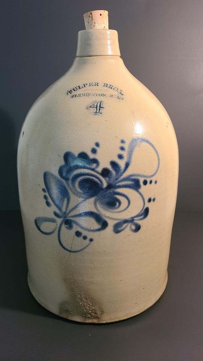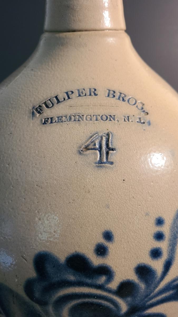 Lot 159: Fulpeper Bros. Flemington NJ #4 Salt Glaze Jug with Cobalt Design