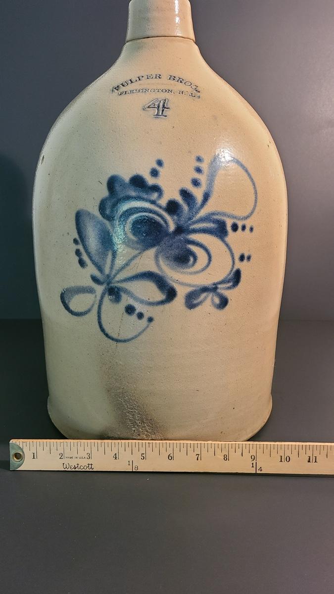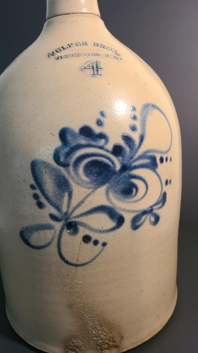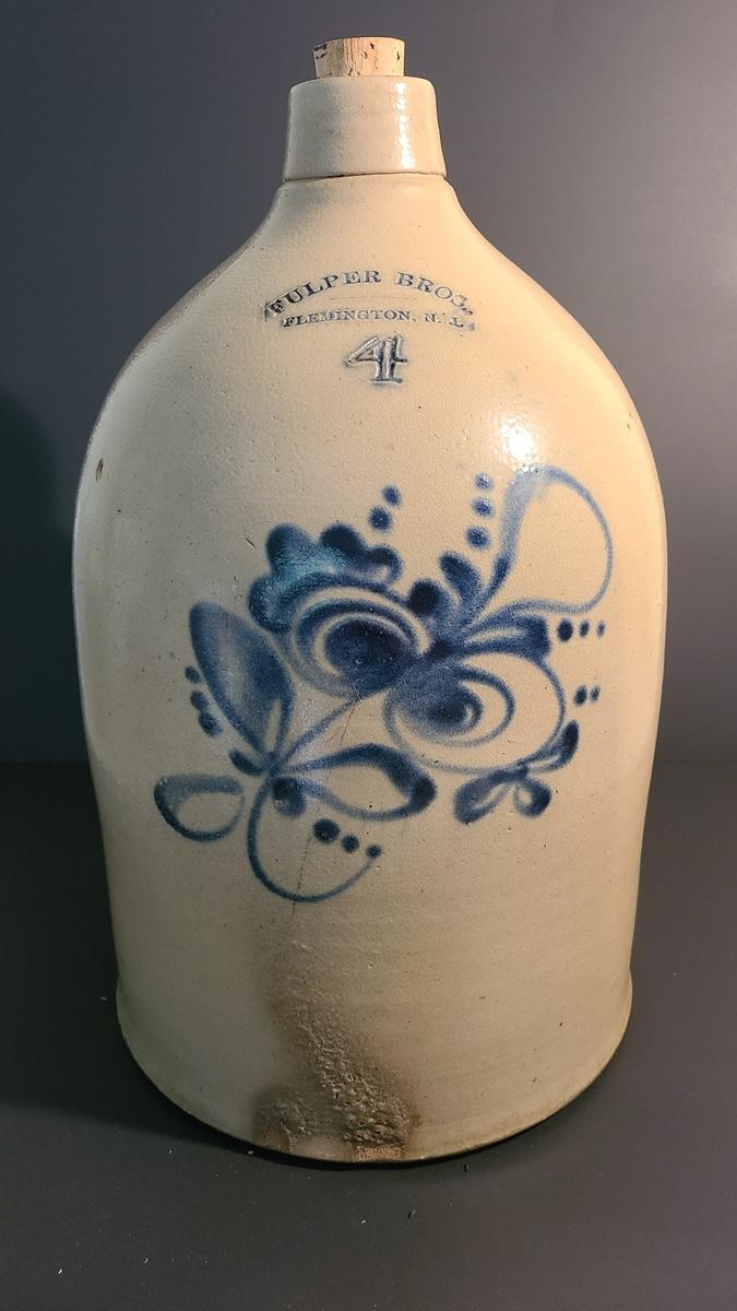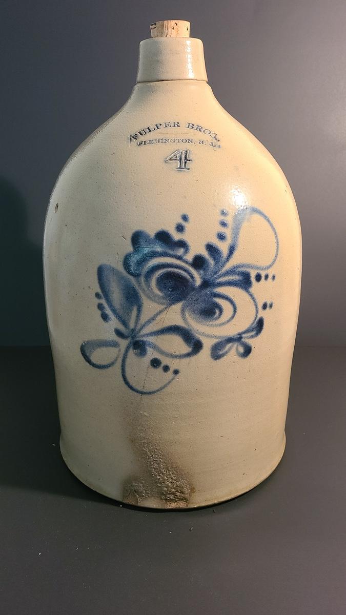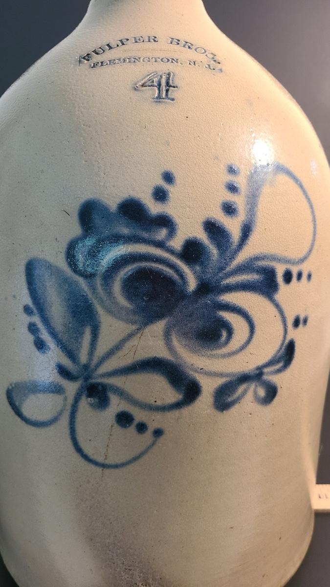 Lot 159: Fulpeper Bros. Flemington NJ #4 Salt Glaze Jug with Cobalt Design