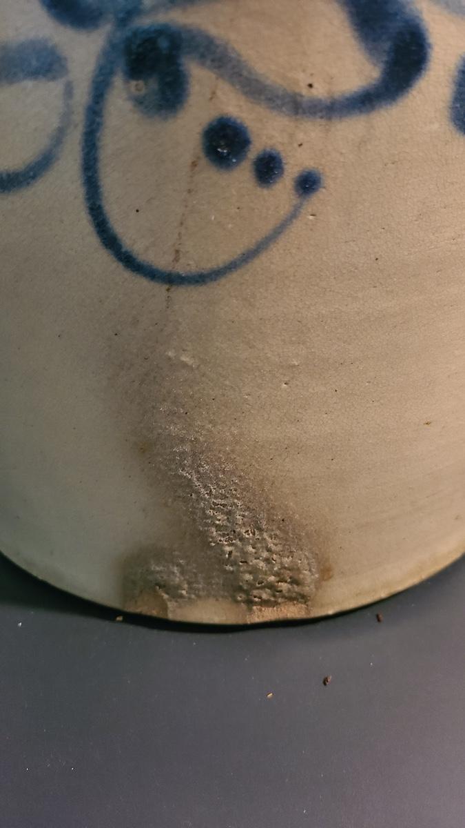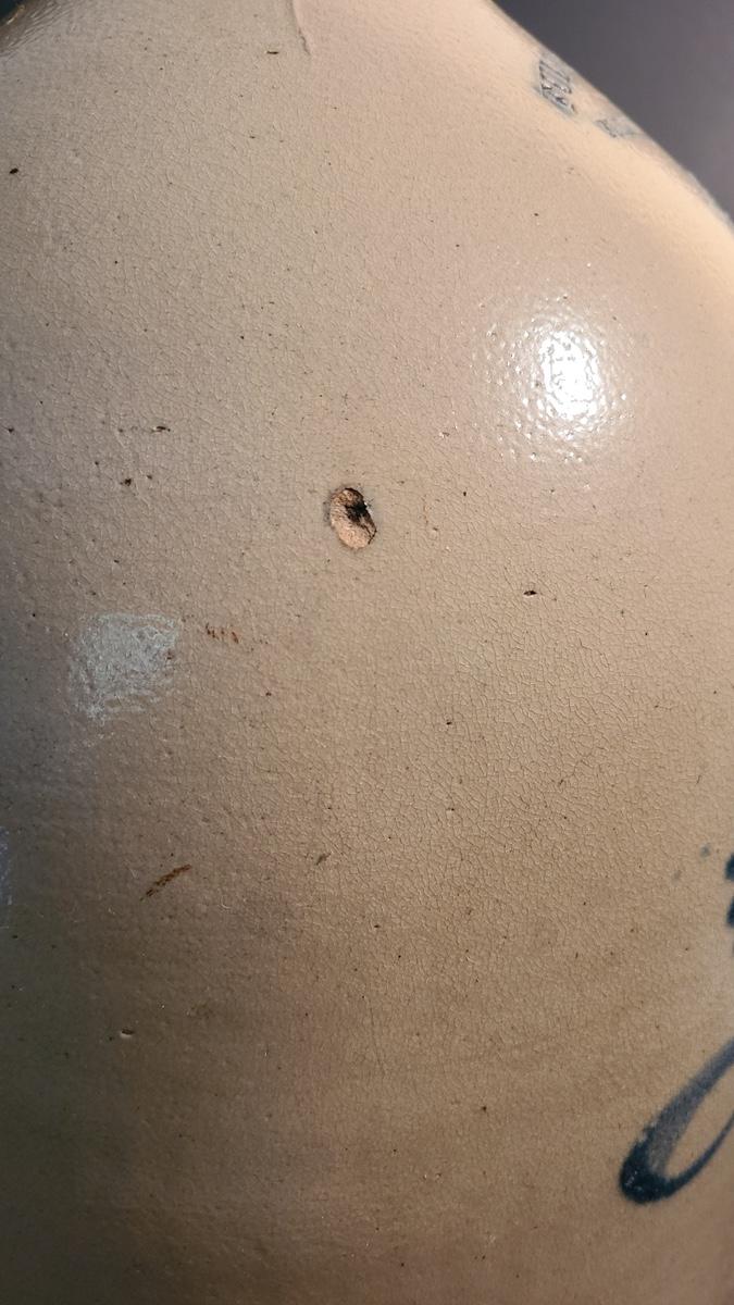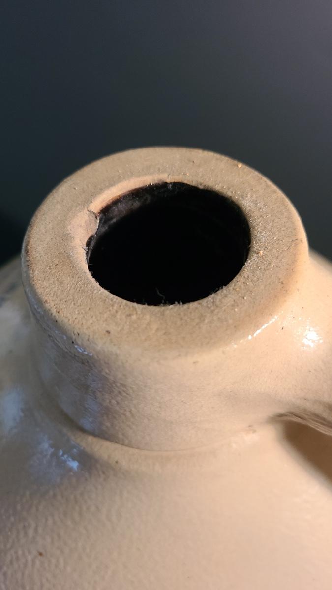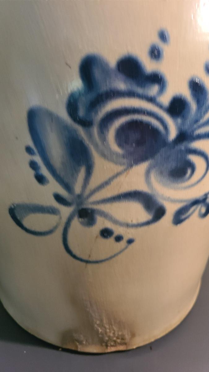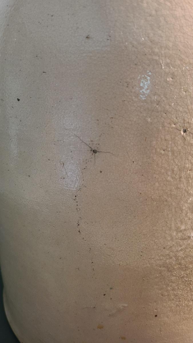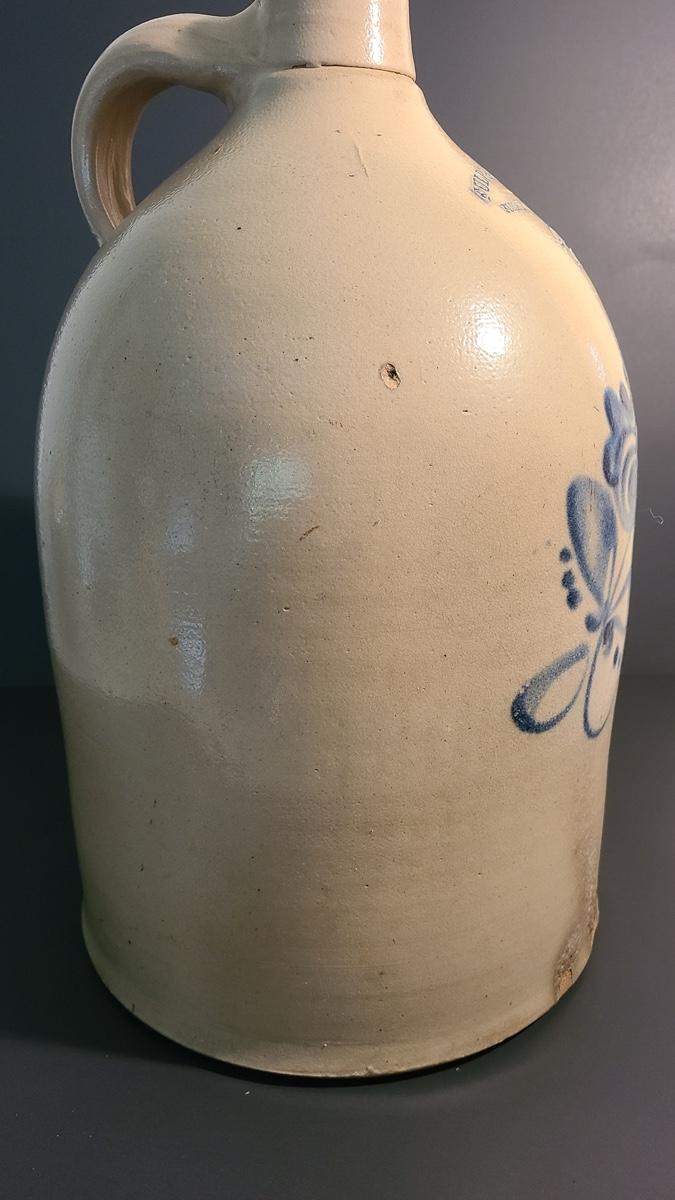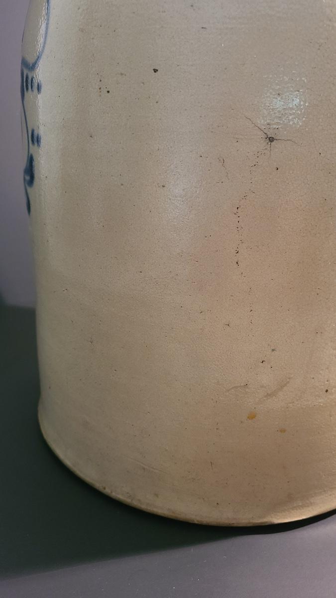 This is a gorgeous and large jug, but it does have some imperfections. Not sure if the front has turkey drippings or something else on the front, the mark down the front is also a mark and not a crack line. There is a small nick in lip of jug, and overall little imperfections or to some, character marks in the glaze. Please see pictures as they are the best representation of the item, and the condition. Please see all pictures as they are the best representation of the items, the condition of the items, and show measurements if taken. Pictures have been taken from all angles of the crocks and jugs so that you can determine condition according to your collecting preferences.