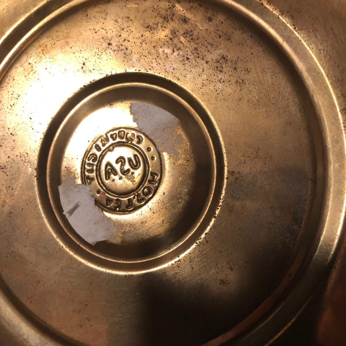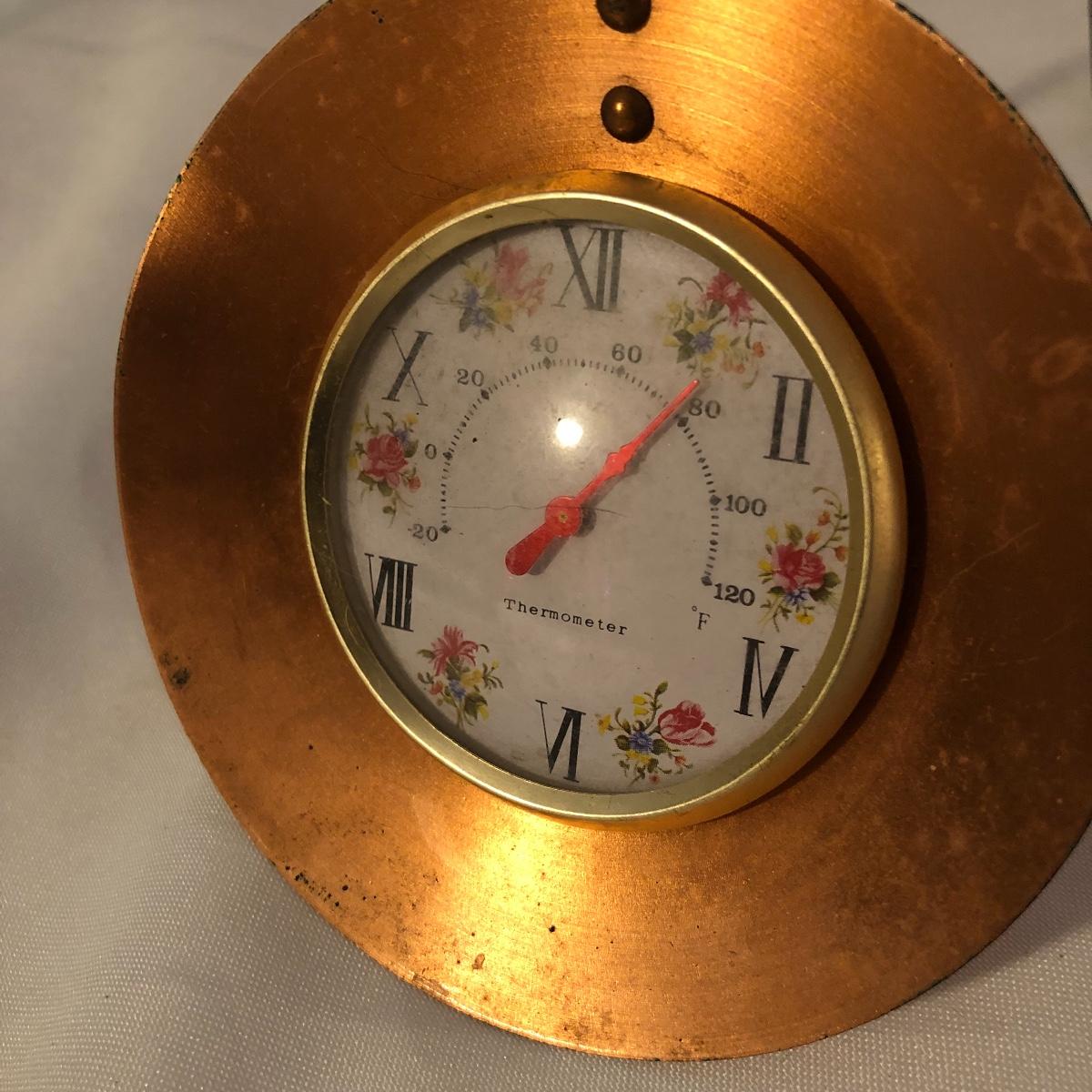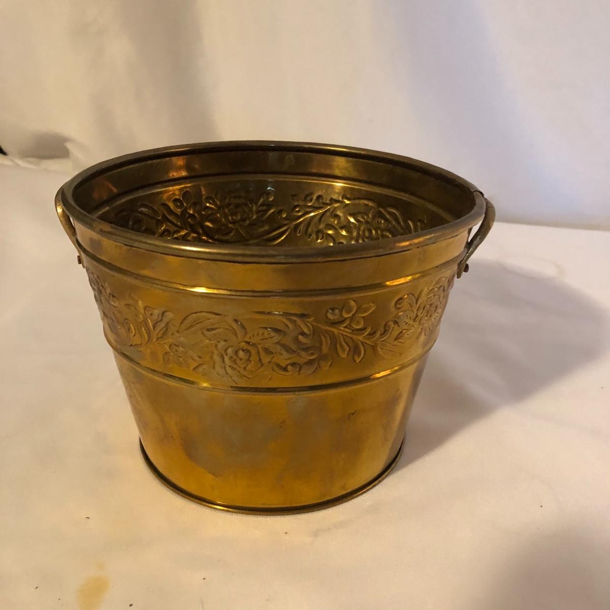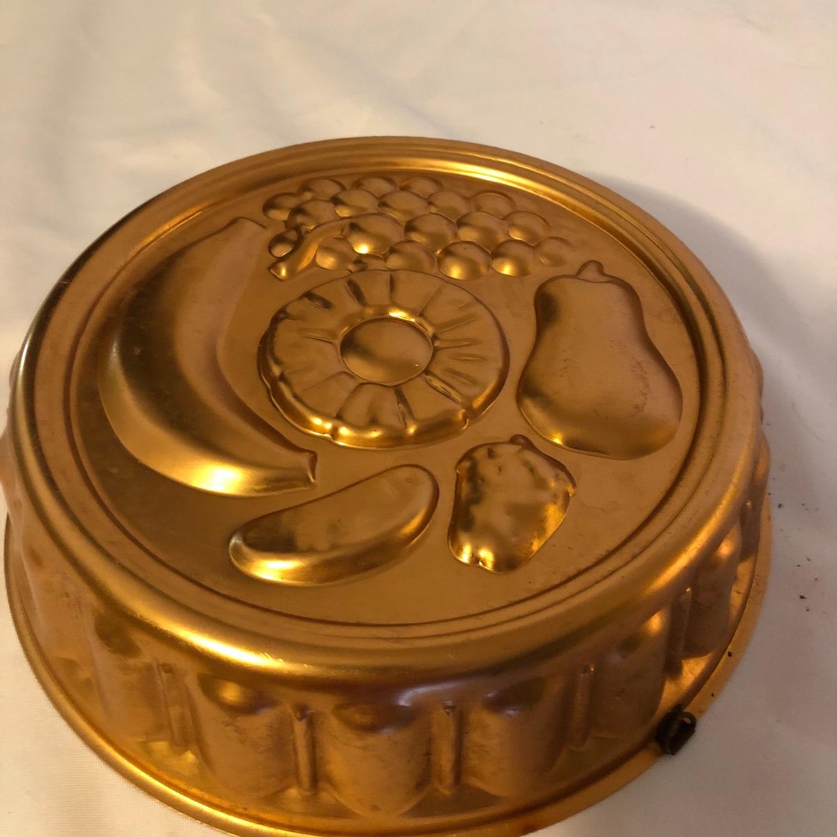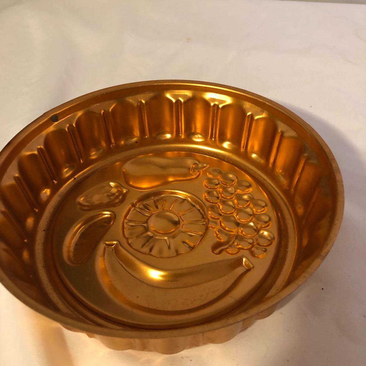 Add a little bling of copper to your kitchen with this lot! It includes a vintage style Pantry Queen bread bin, a lidded container, a bucket, a decorative mold and two wall spoons - one a thermometer and the other to hang keys. The Pantry Queen bread bin measures 17.5” wide x 10” deep x 7” tall. The mold is 10” In diameter. Shipping Available.