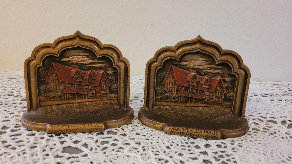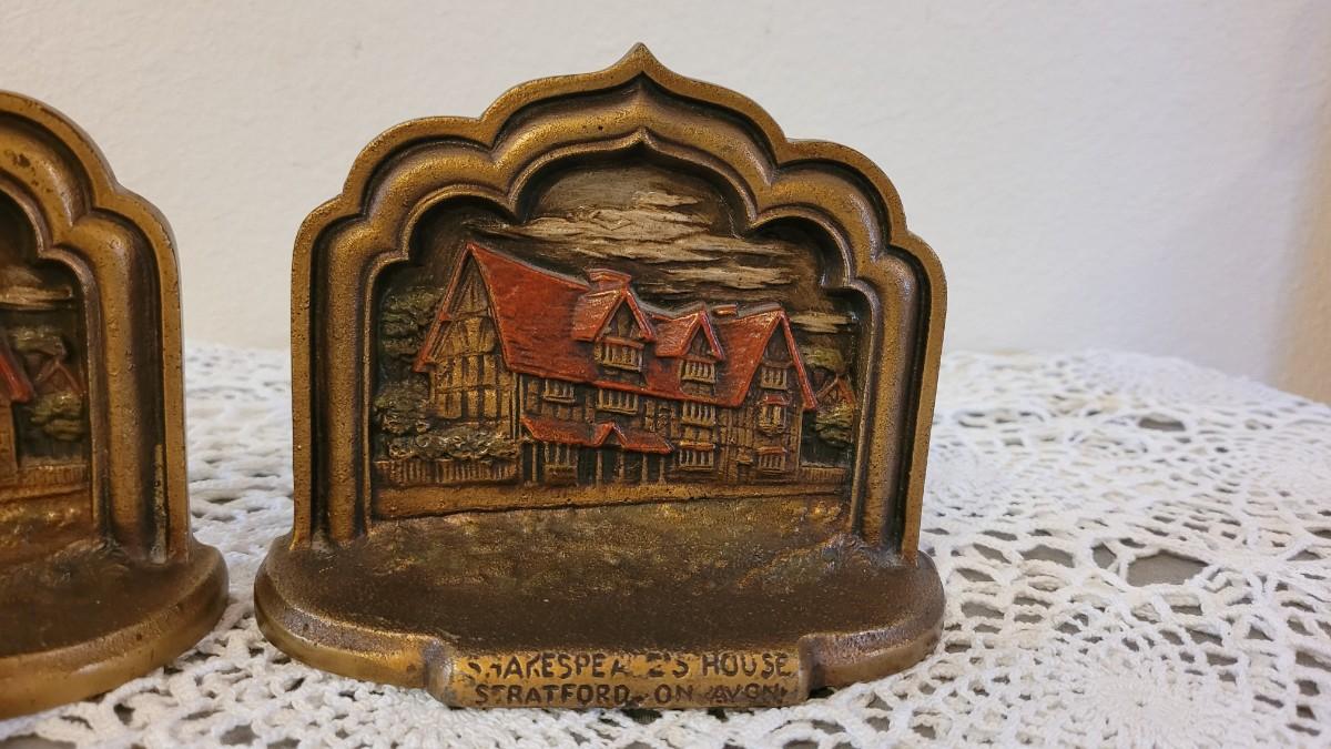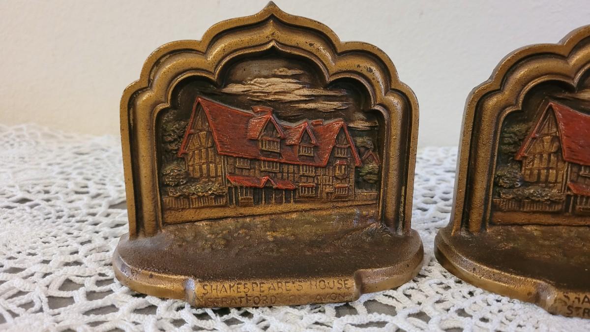 Lot 159: Antique Heavy Brass Shakespeare's House Bookends