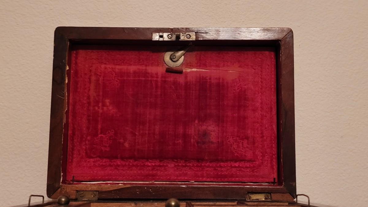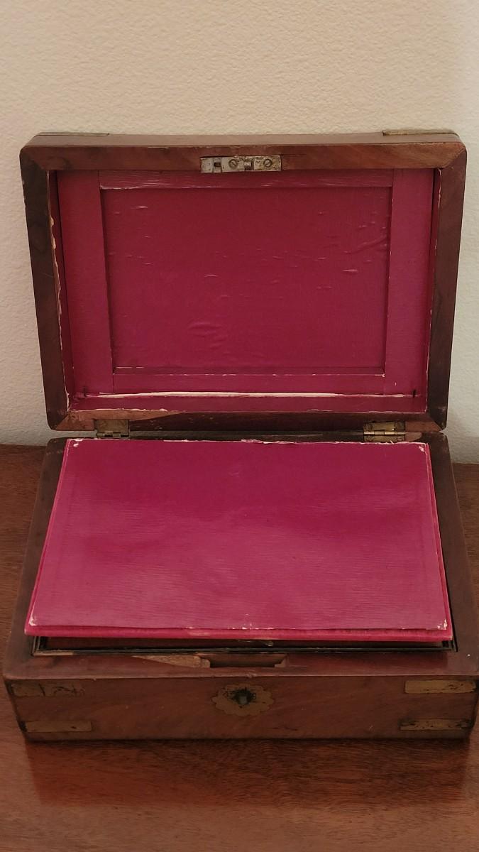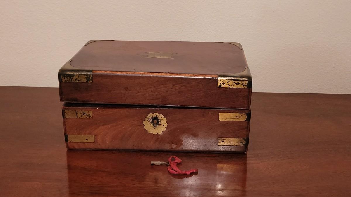 Excerpt: The lap desk, writing slope, writing box, or writing cabinet originated in the 17th century as a trendy accessory for the traveling gentleman. The box was small enough to be carried on his horse or by his valet and was designed to hold all his implements of correspondence.