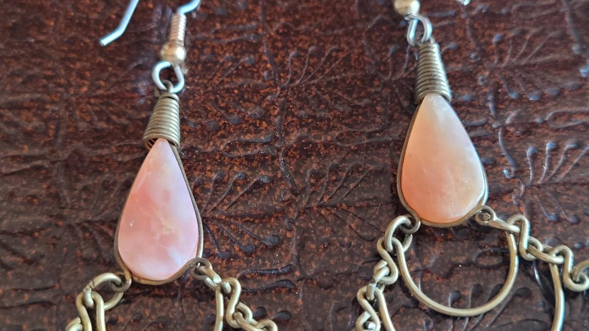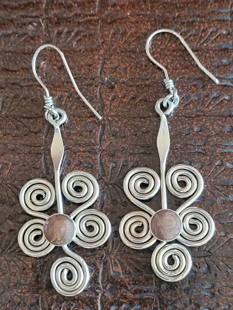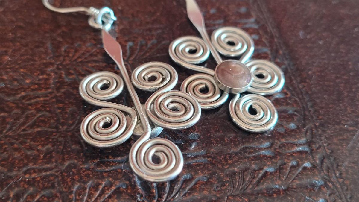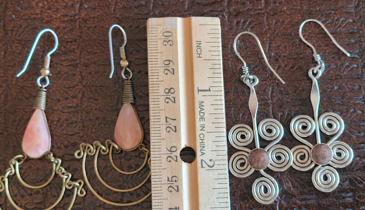 One brass with rose quartz and the other silver with either Enamel or stone center.