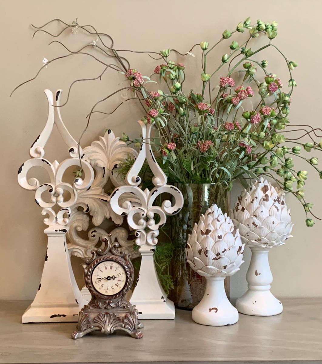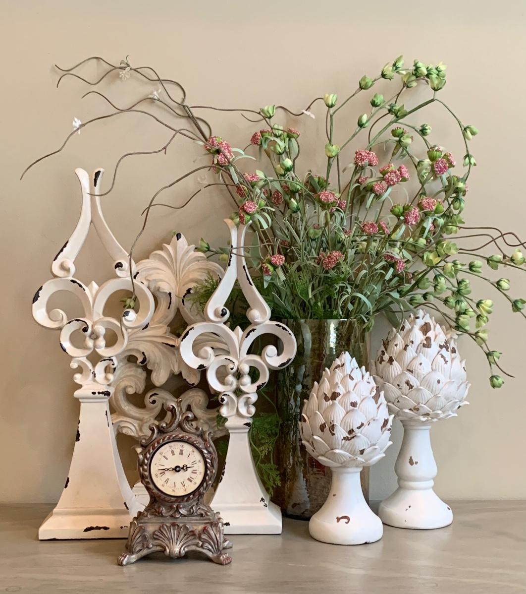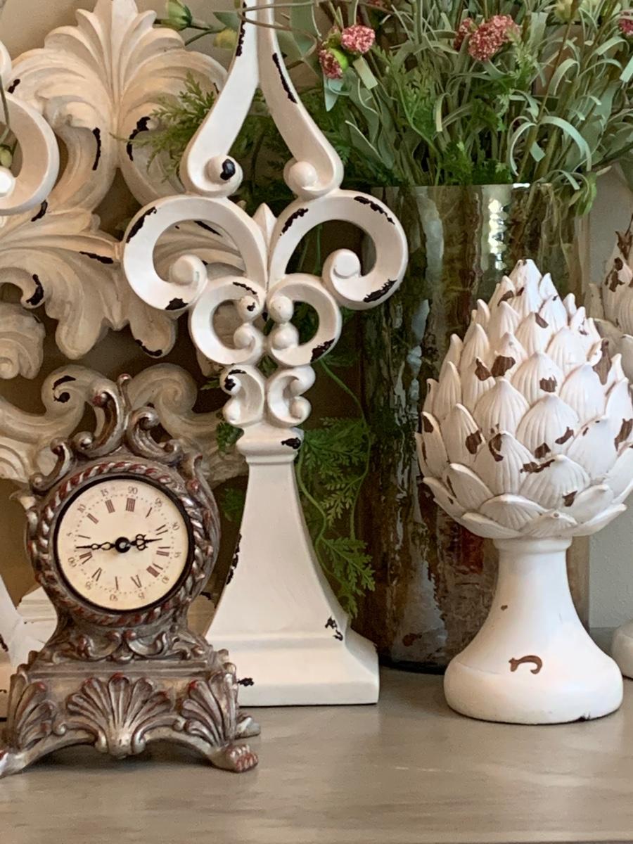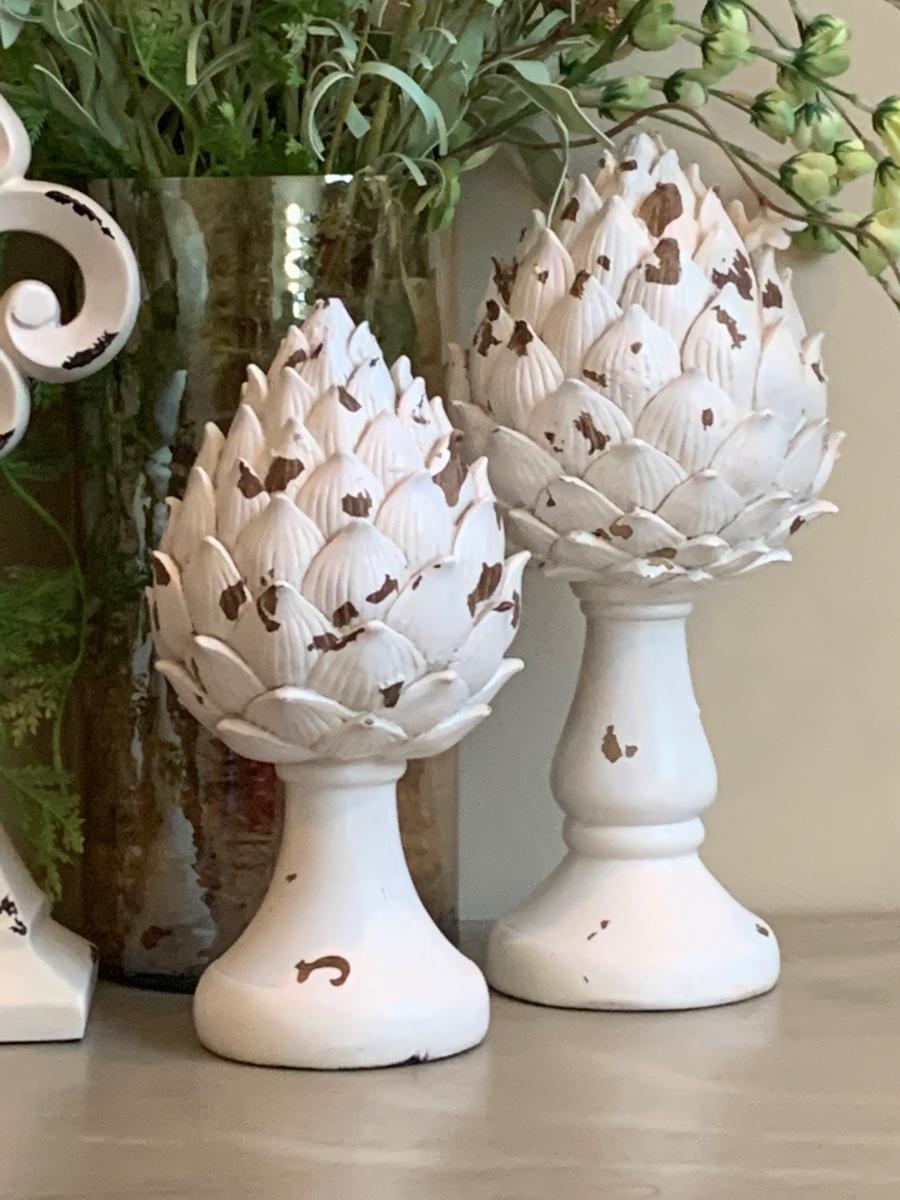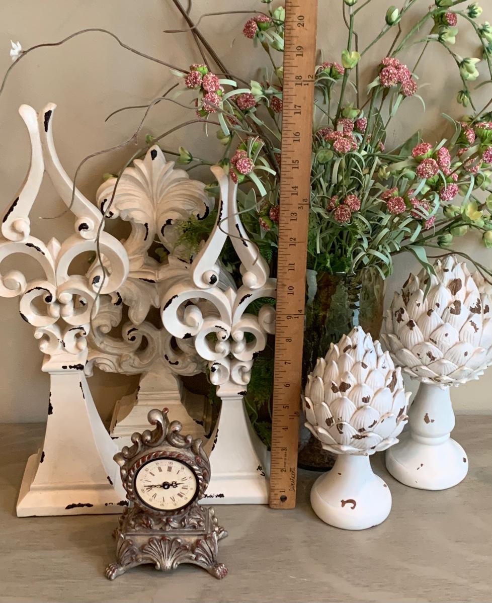 Lot 159R: Home Accents: Weathered Farmhouse Artichokes, Fleur De Lis Finials & More