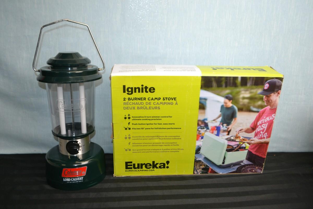 IGNITE BRAND PORTABLE CAMP STOVE AND COLEMAN BATTERY POWERED LIGHT