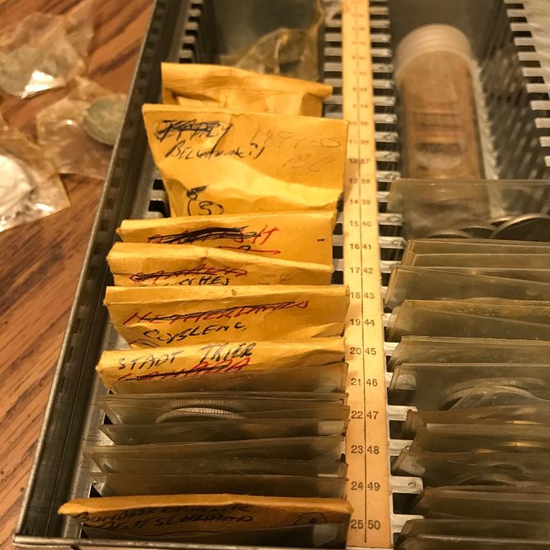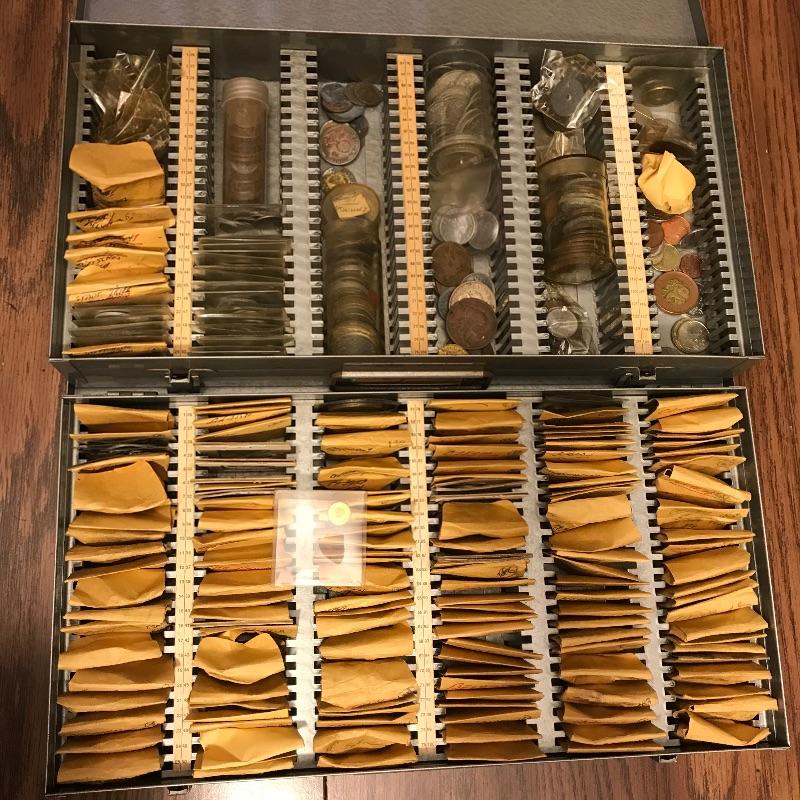 Another huge selection geared more toward the avid collector. Photos start with an 1854 coin that says California Gold 1/2. The back has a bear on it which usually means it’s counterfeit. This Lot includes hundreds of coins lots of old and some newer, from the late 1800s to mid-late 1900s. The second case pictured has many more coins in envelopes that are not pictured, there are between 17 and 25 envelopes in each compartment. Some coins look great and others show oxidation and worn out symbols. See photos for examples of all there is here! We invite you to come to preview on Monday to inspect each coin as you please. Cases measure 14.5” x 7.75” x 2.25”. Shipping available, but understand these items will be heavy. No returns. Please call UPS at 828-252-6930 for a quote prior to bidding.