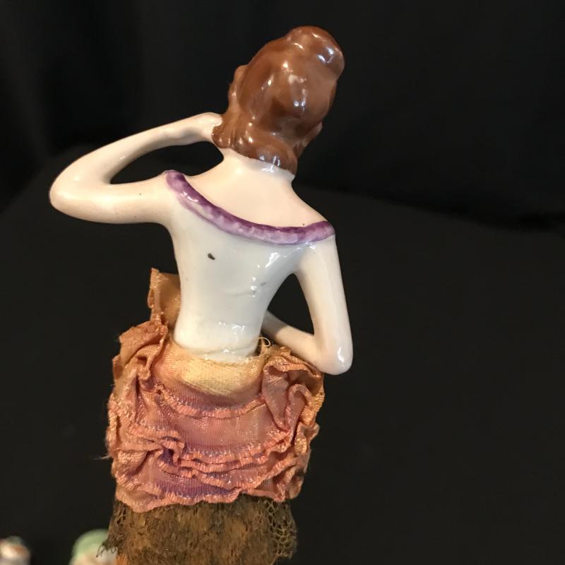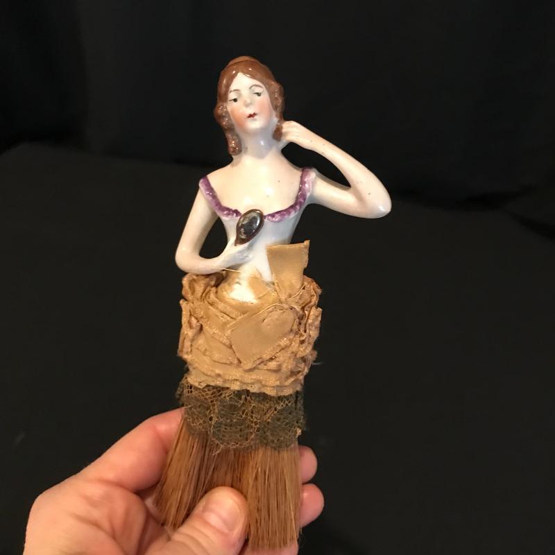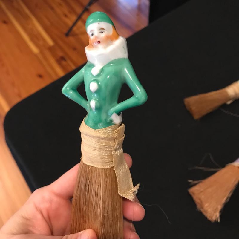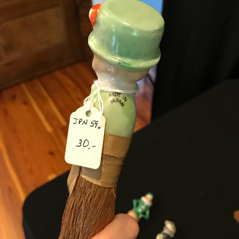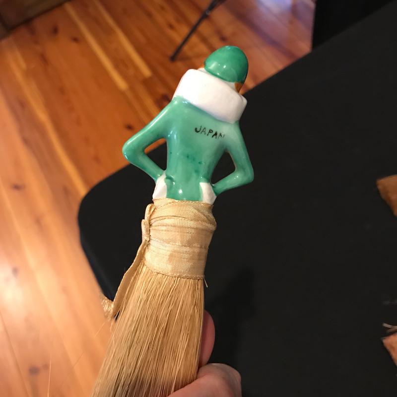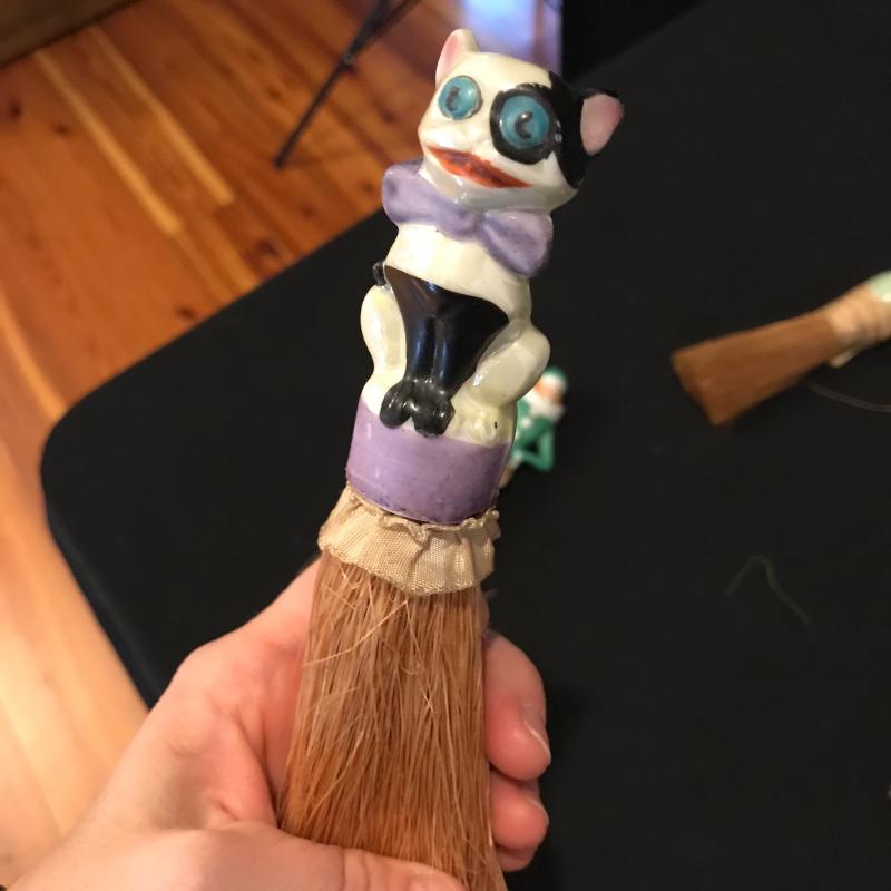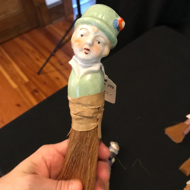 Six antique ceramic broom dolls from Japan and Germany. Tallest measures 8”. Shipping available or local pickup in Asheville, NC.