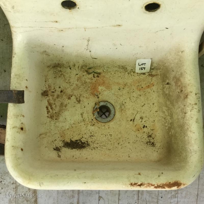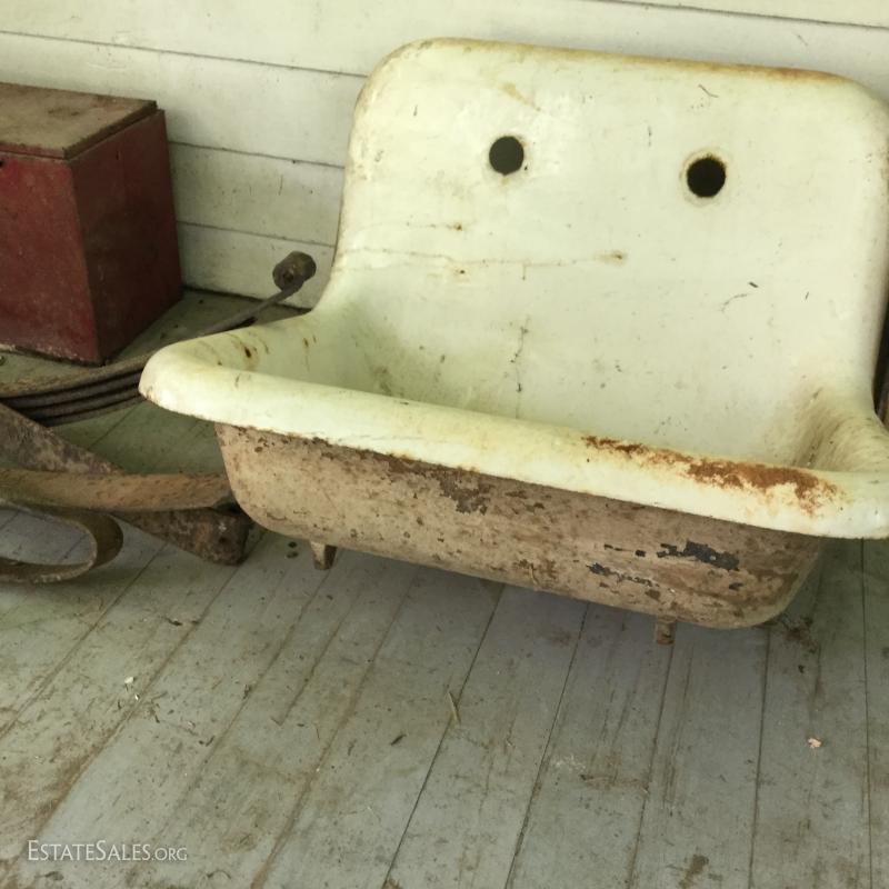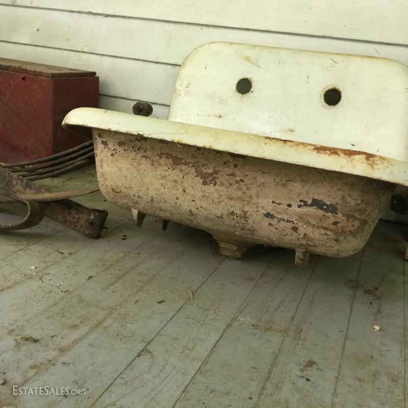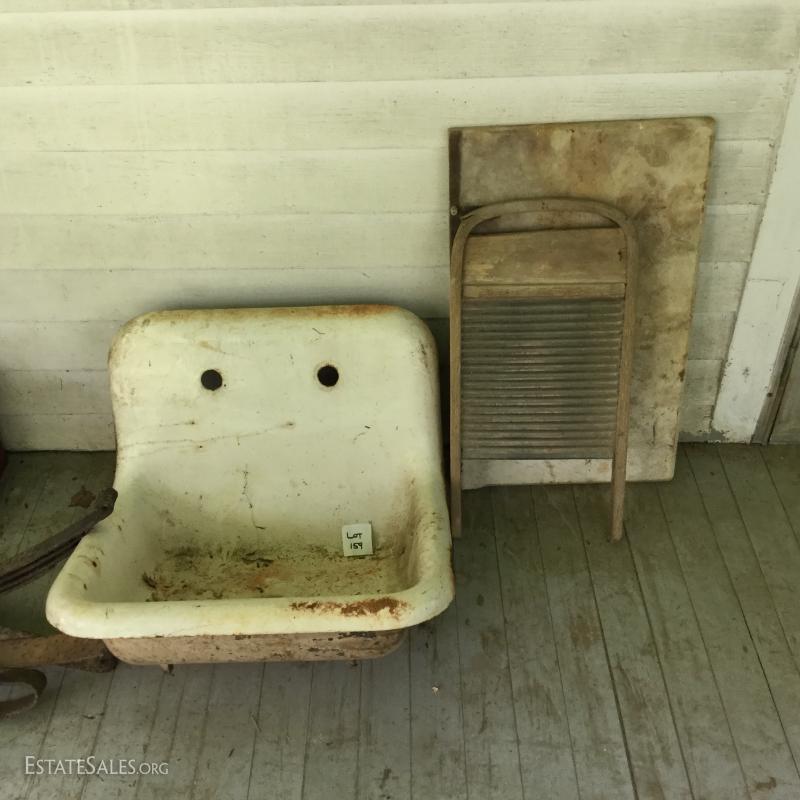 Lot 159: Antique Cast Iron Sink, Marble Slab and Wash Board