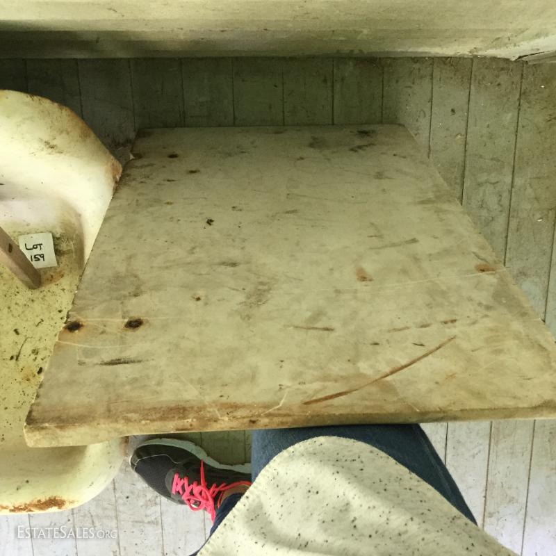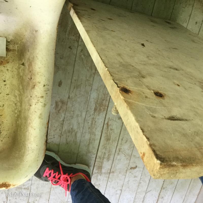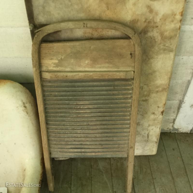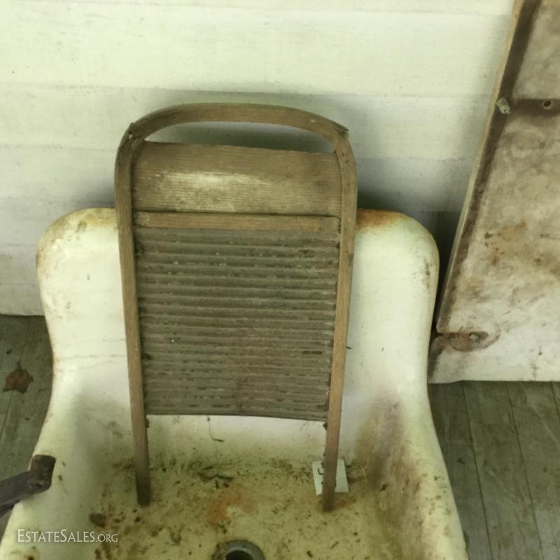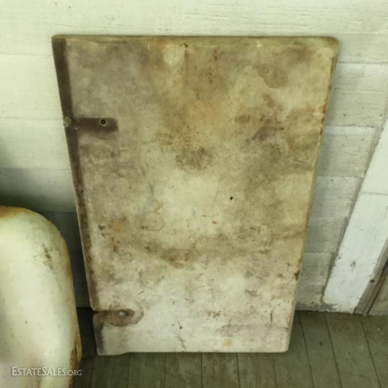 Wash Board has some wood damage and sink has rust spots. Marble slab measures 28"l x 17"h. This lot available for local pick up only in Saluda, NC.