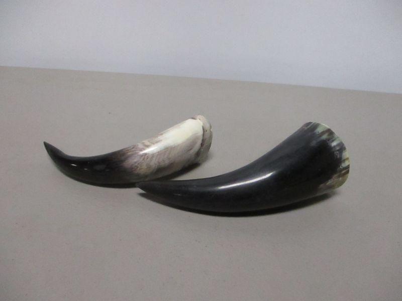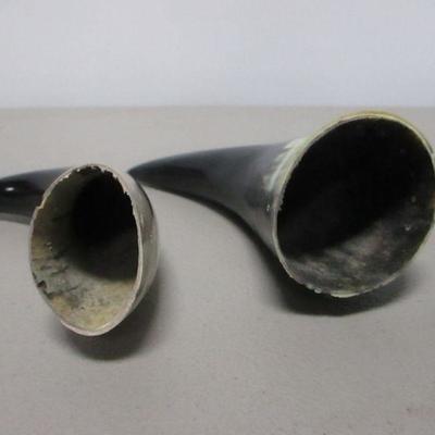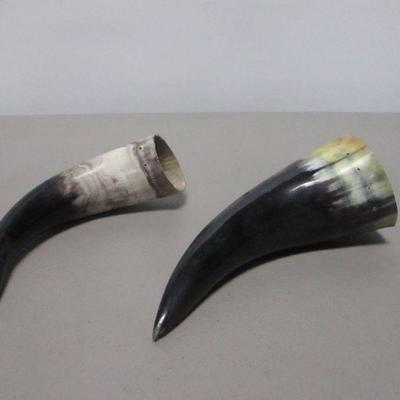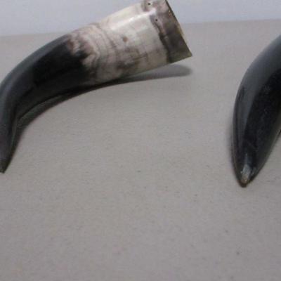 Lot 159 - Black Animal Bull Steer Cow Horns with White/Off White Accents