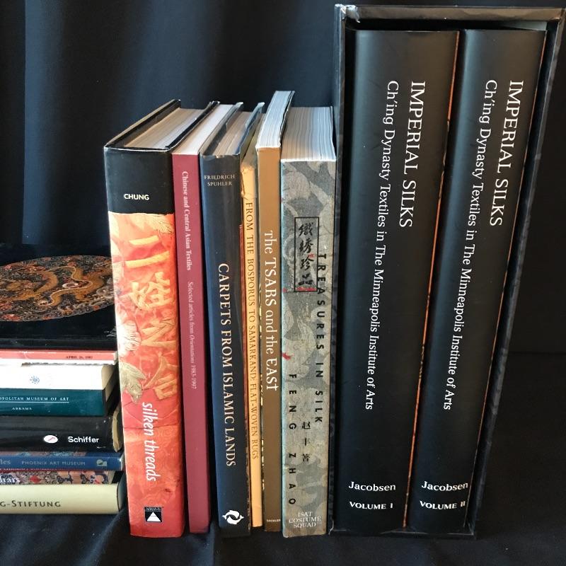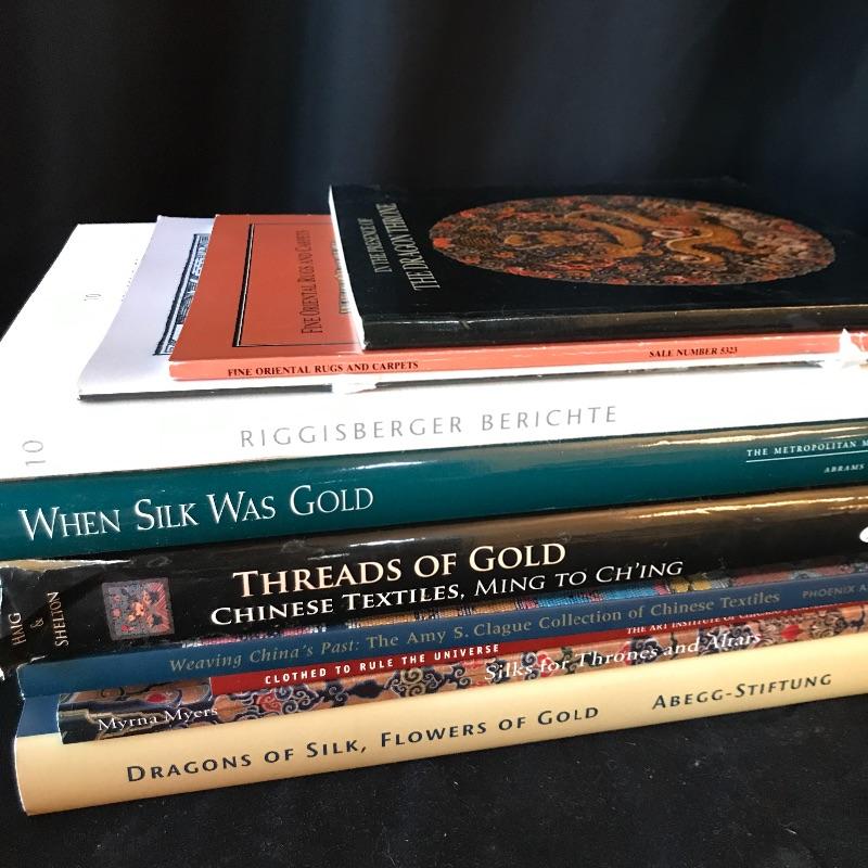 These gorgeous books cover topics on Chinese textiles, silk, carpets and wardrobes. It includes a lovely box set called Imperial Silks. (Box itself has tear but books are fine). All book titles have been photographed. No shipping.