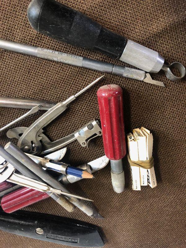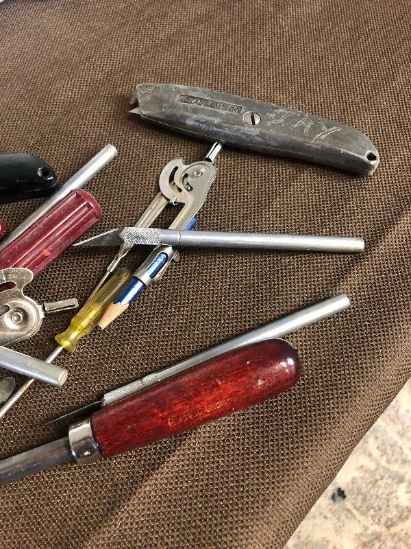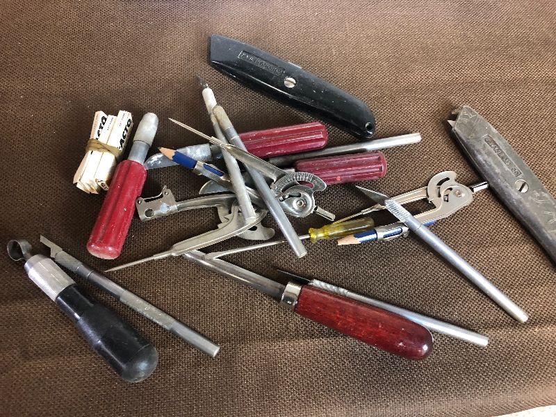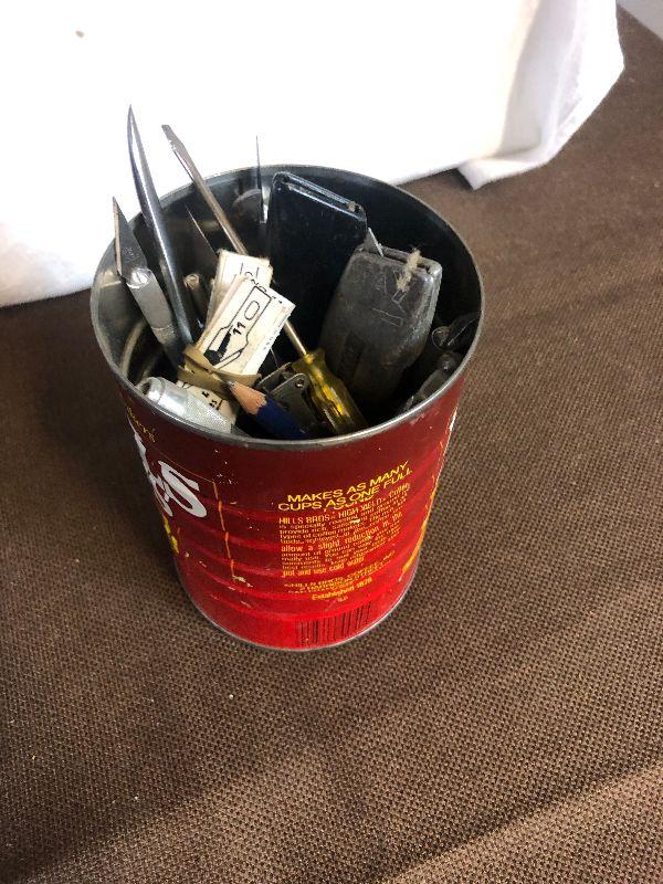 Lot #159 Handy Dandy Coffee can Storage with  Art tools. Xacto and knives