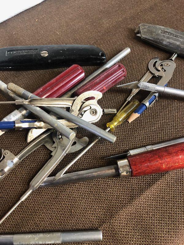 Lot #159 Handy Dandy Coffee can Storage with Art tools. Xacto and knives