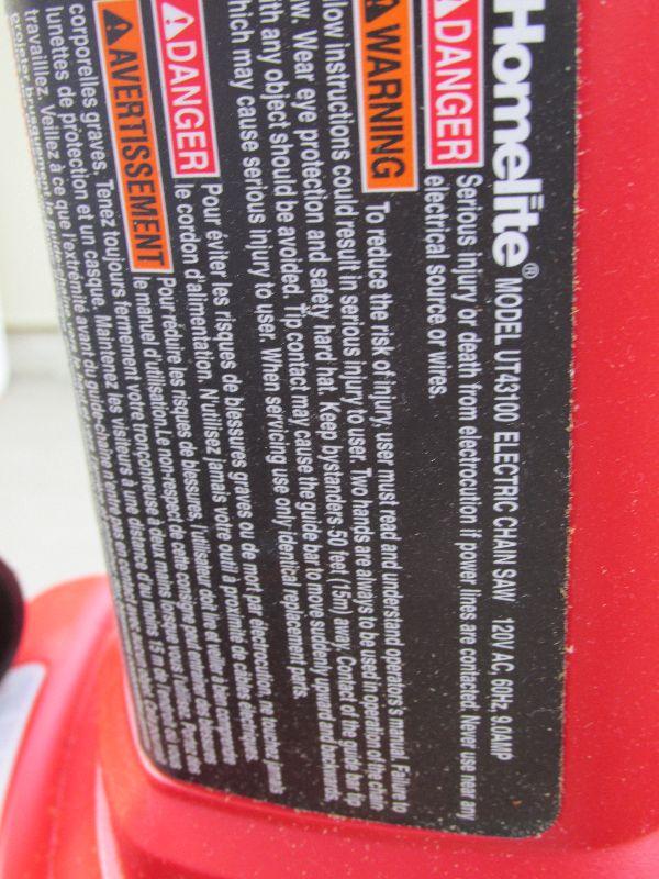 Homelite 14" Electric Chainsaw. Model # UT43100.