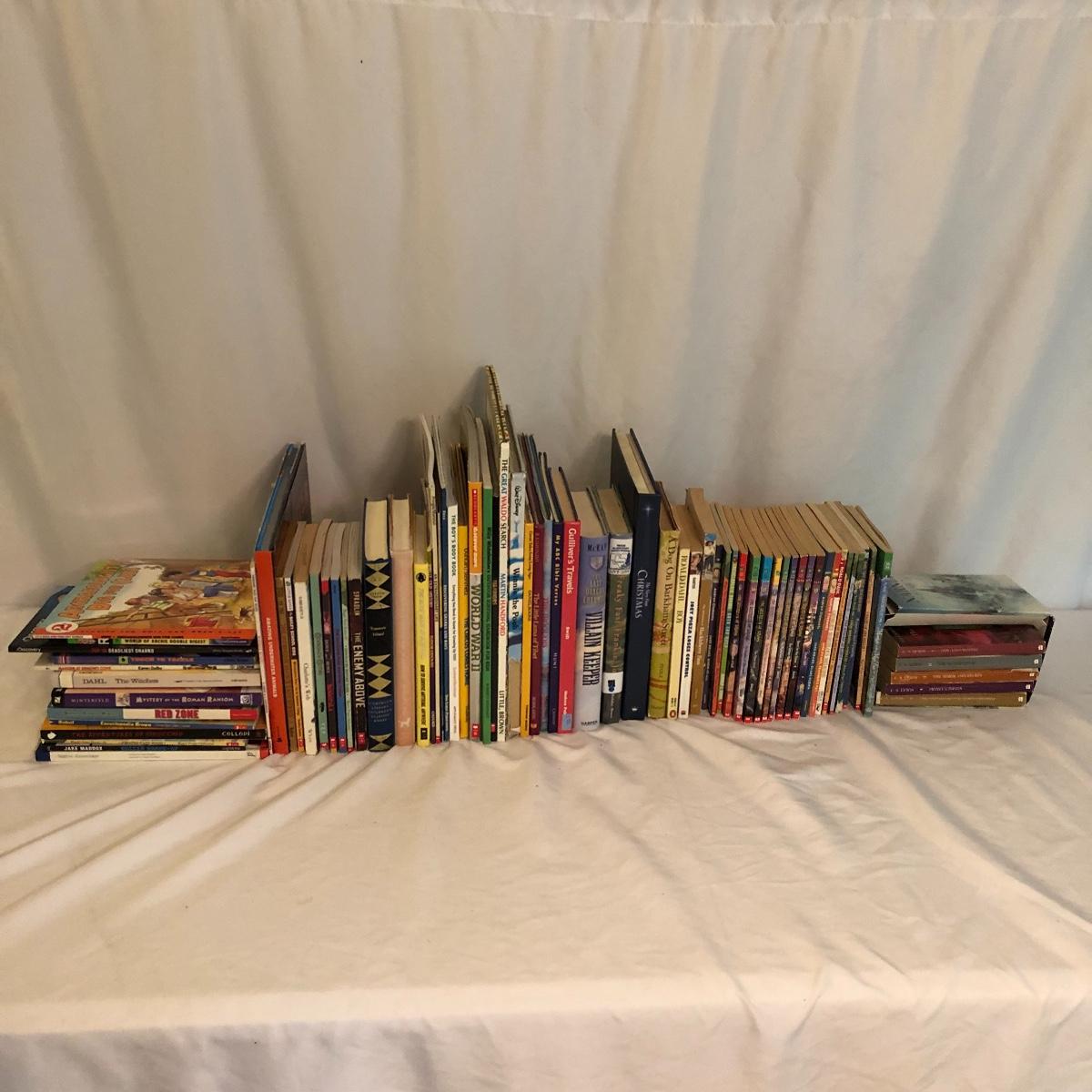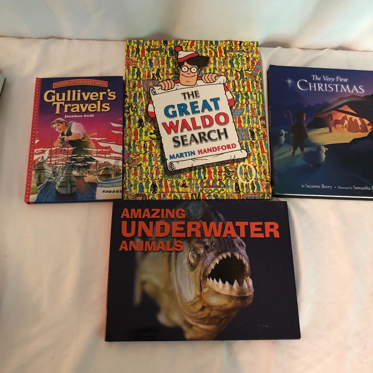 Keep your child engaged this summer with a great collection of kids books. Lot includes Titles Winnie the Pooh, The Adventures of Pinocchio, The Great Waldo, Gullivers Travels, The Boys Book of Survival, Red Zone, Pirates Past Noon and many more.