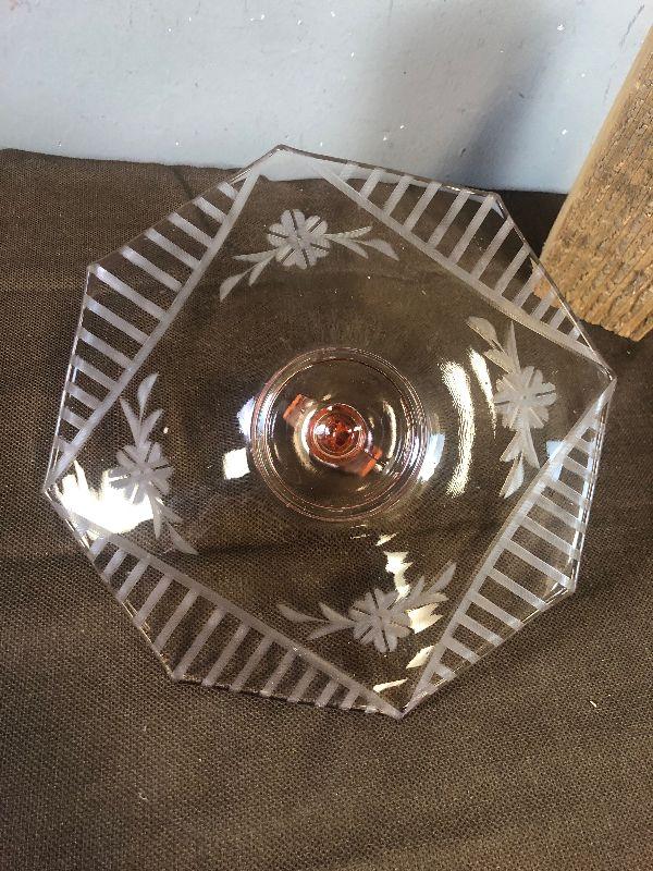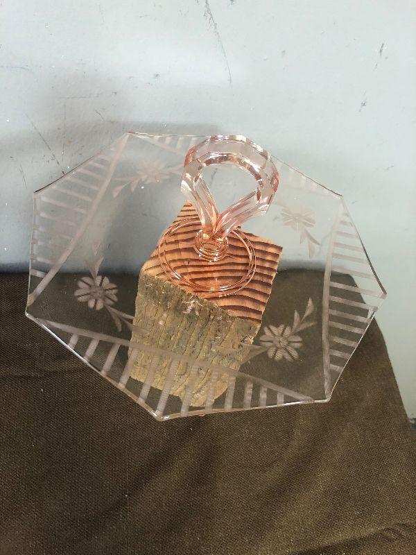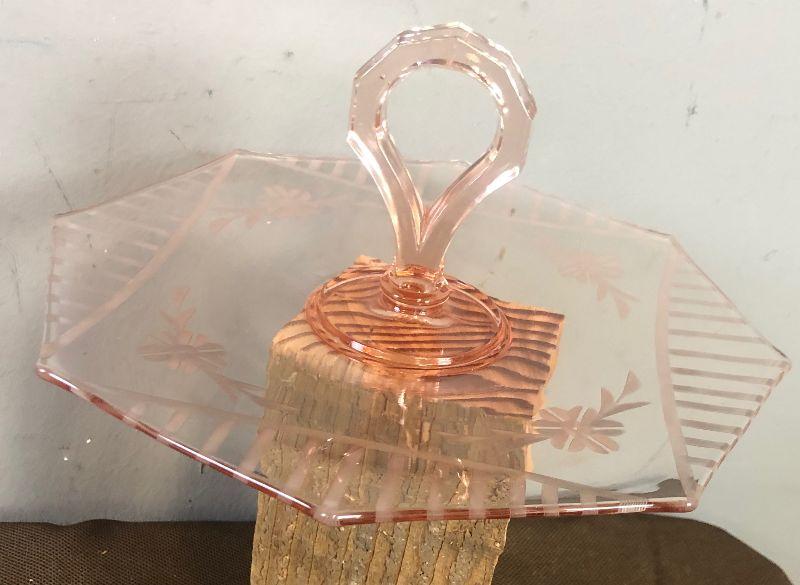 Lot #159 Pink Depression Glass Dish with handle