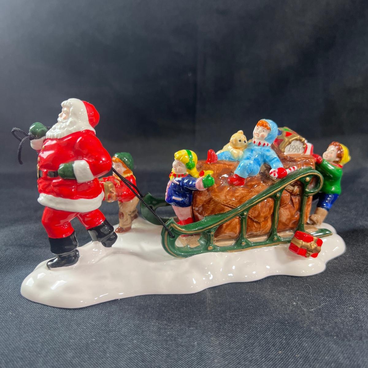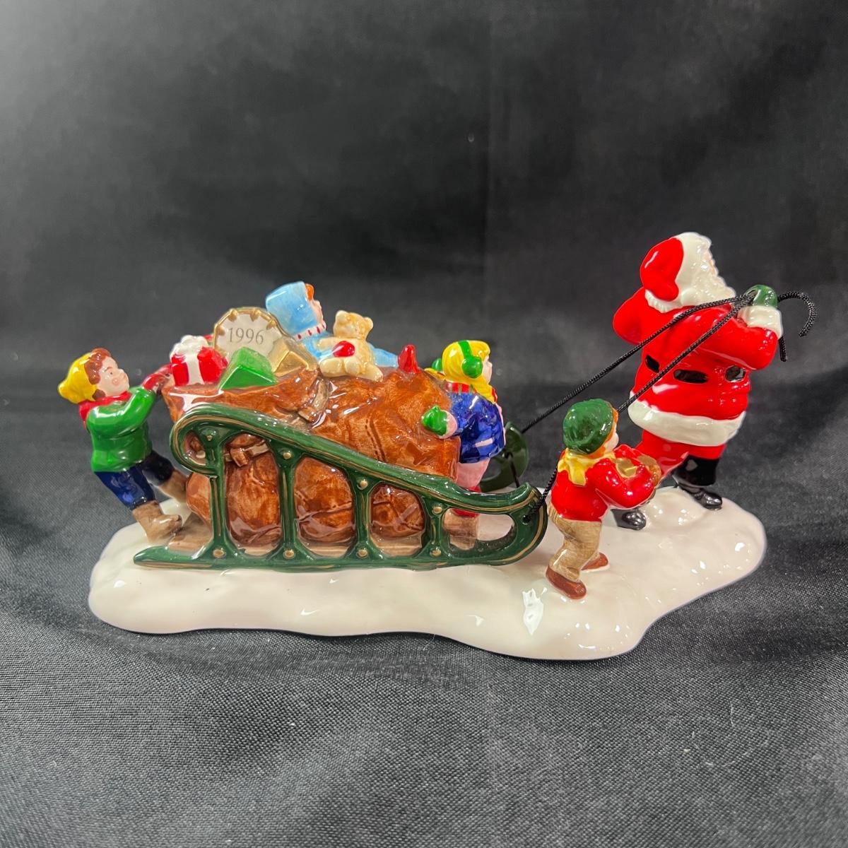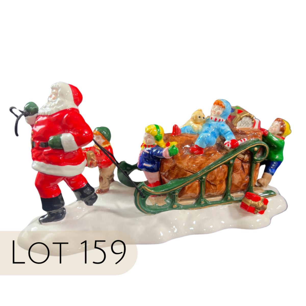 Here comes Santa Claus, with an entire sled full of children that have skipped school for the day. I hope that he’s taking them the truancy office. This piece is in exceptional like-new condition. Please see photos for details and condition. ::: Shipping is available on this lot. If you require shipping you must let us know at the close of the auction. We will coordinate with you after the item has been won. Shipping fees will include insurance up to or exceeding the value of all items being mailed. If you have any questions regarding this lot please contact the auctioneer either via this website, by direct email or by phone. PICK UP TIMES and other important information can be found in the TERMS and DESCRIPTION of the auction. Please take a look for pertinent information. Thanks! Any condition statement is given as a courtesy to a client, is an opinion, and should not be treated as a statement of fact. Reference to condition written, oral or within a condition report shall not be regarded as a full account of condition and may not include all defects, alterations, or restorations. Absence of a condition report does not imply a lot is flawless or lacking imperfections or damage. Katherine’s Auction & Appraisal Service shall have no responsibility for any error or omission. Returns shall not be accepted on the basis of condition.