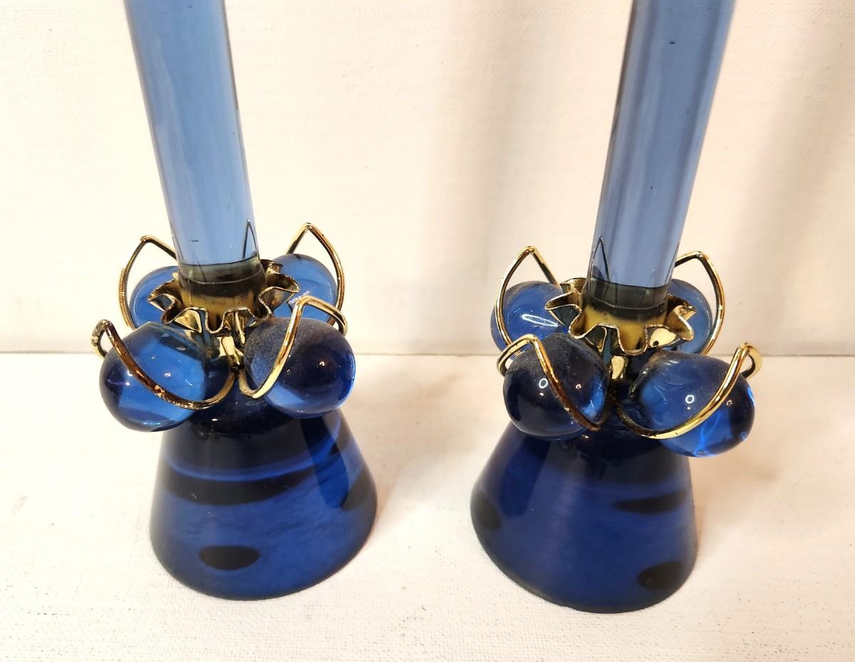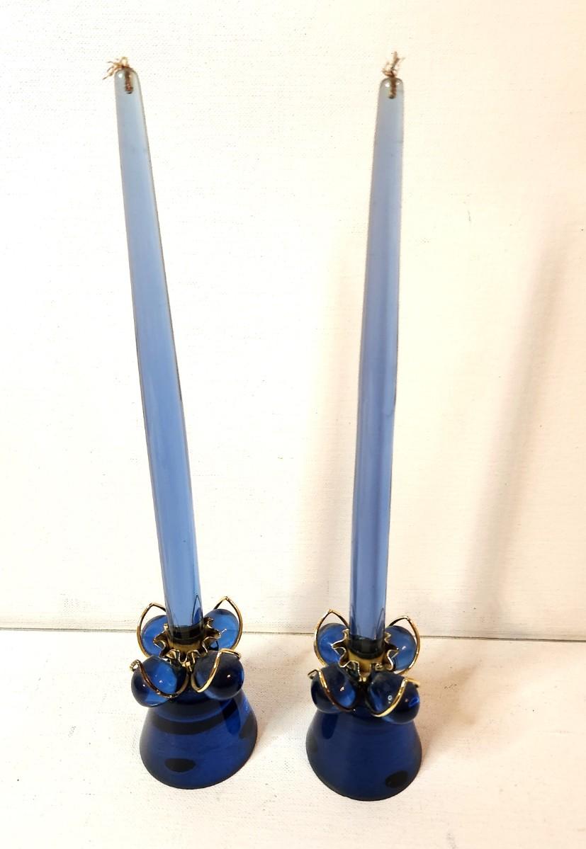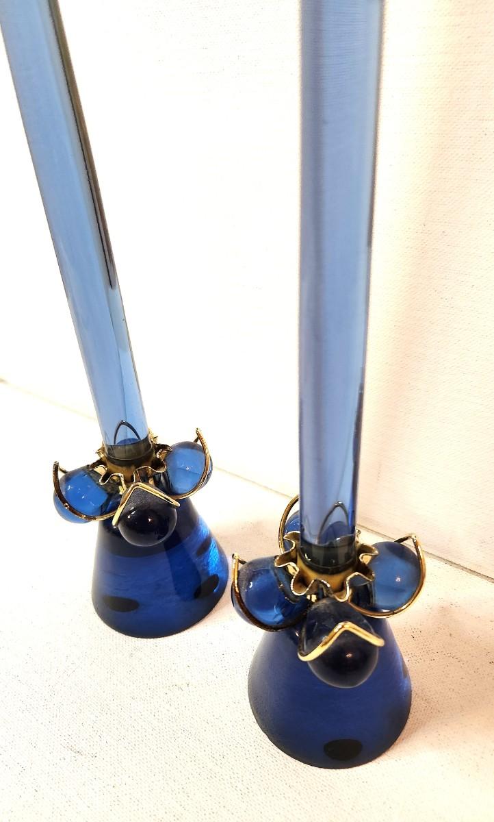 Lot #159 Set of 2 MCM Blue Lucite Candles with matching Holders - Great condition