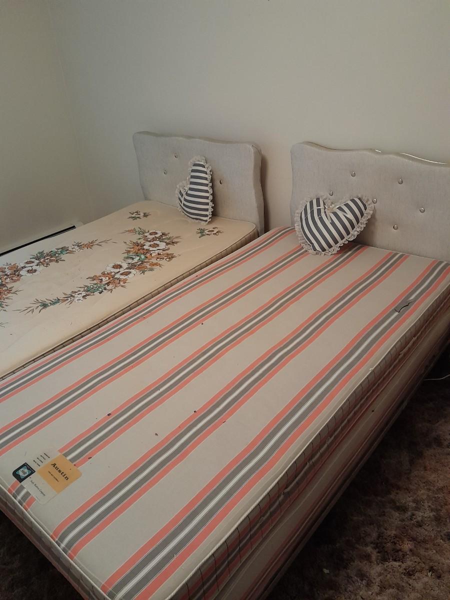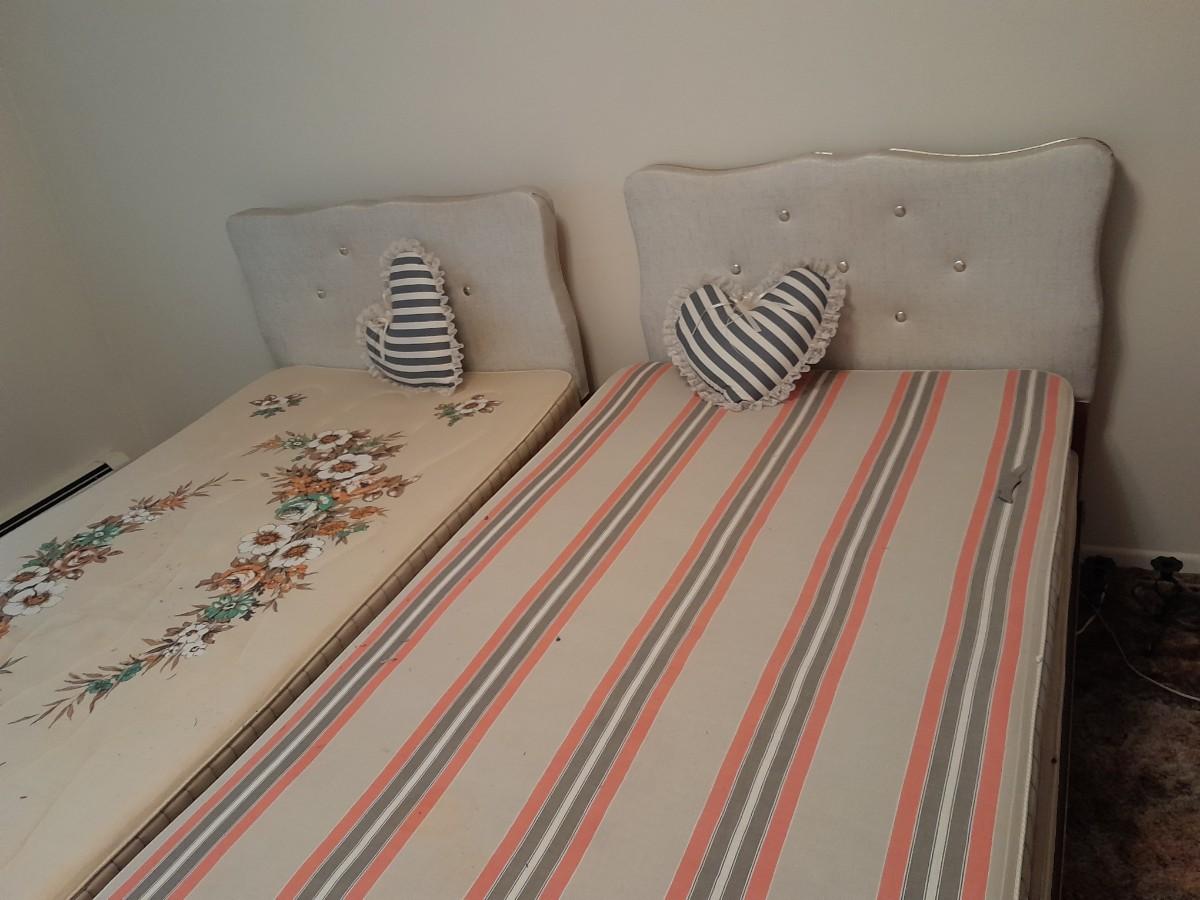 TWO TWIN SIZED BEDS WITH MATCHING HEADBOARDS 36" X 38"