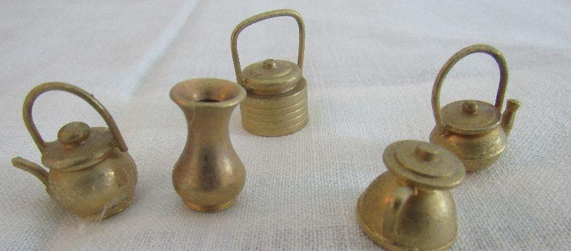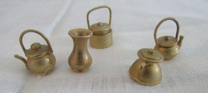 Lot 159 - Vintage Miniature Brass Dollhouse Items