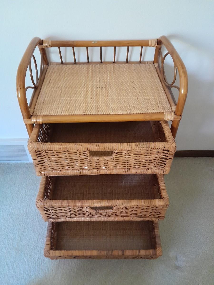 BAMBOO AND WICKER NIGHT STAND 29.5" X 19" X 15"