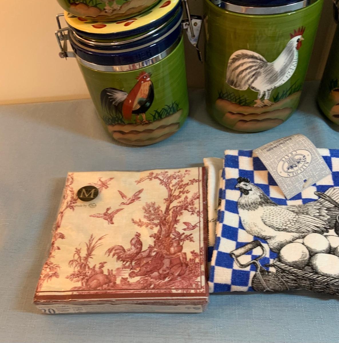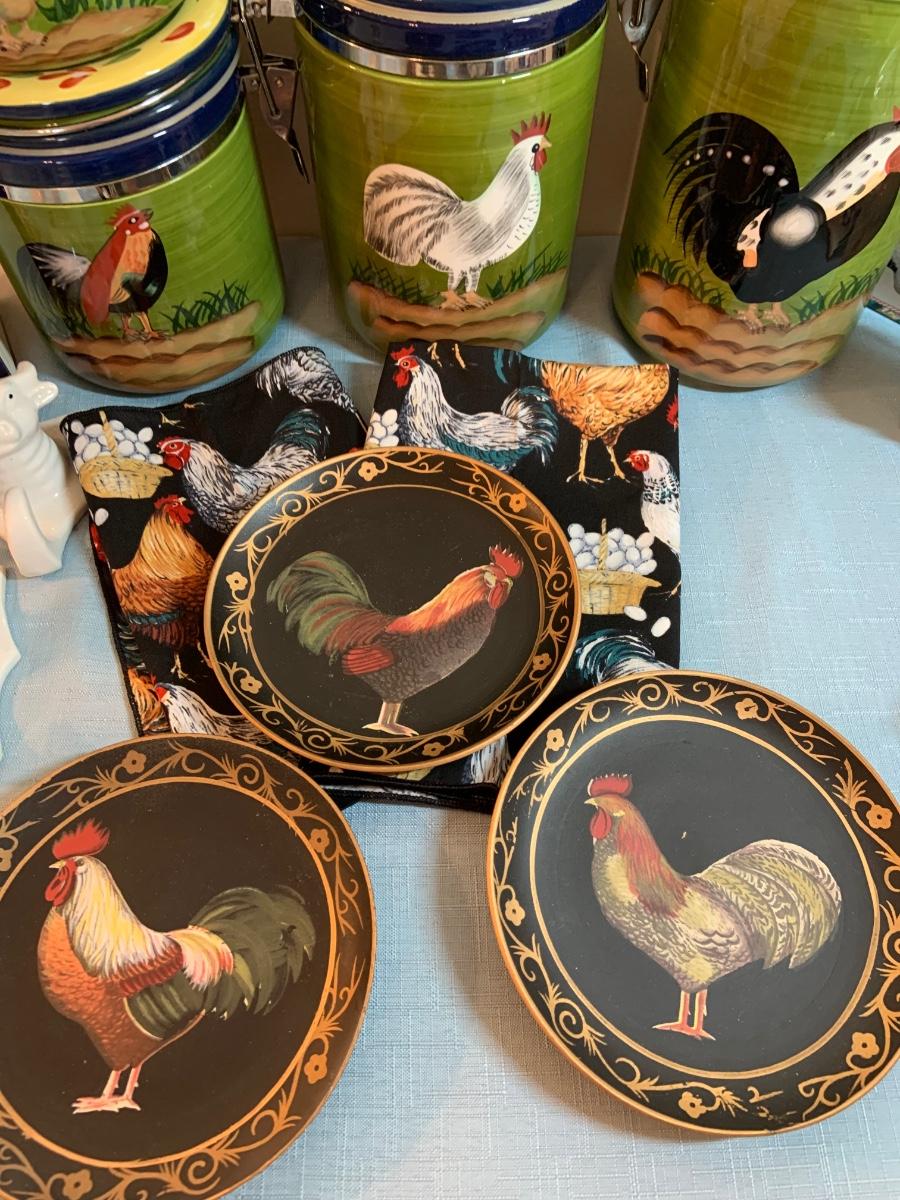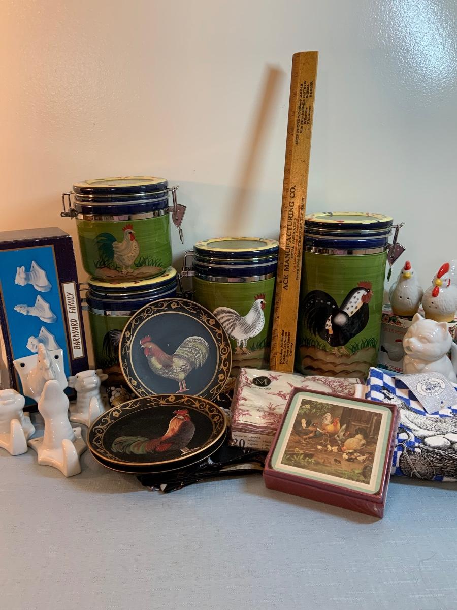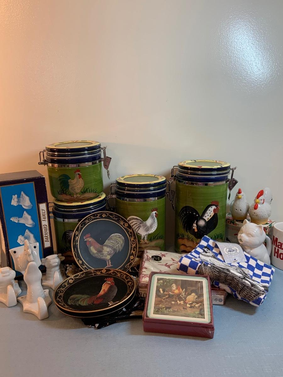 Lot 159G: Country Kitchen Collection Featuring Chicken Canisters, Plates, Linens and More