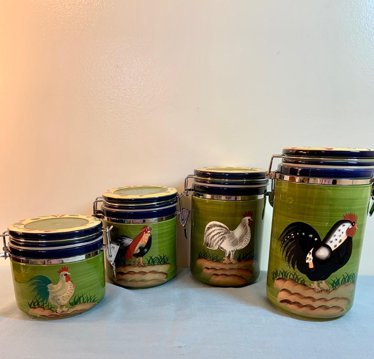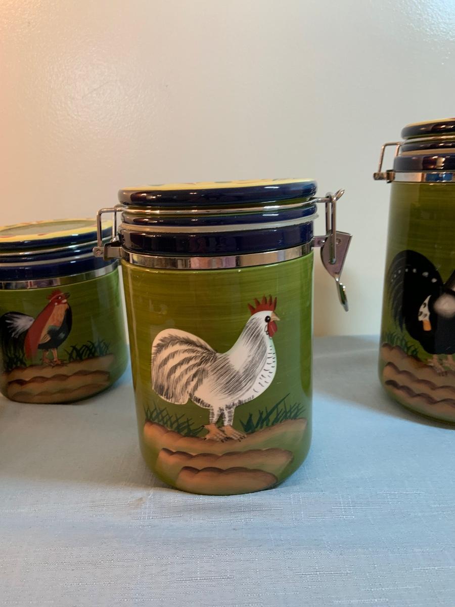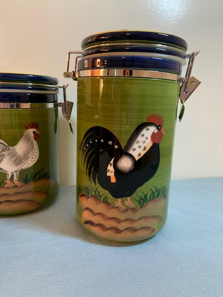 Lot 159G: Country Kitchen Collection Featuring Chicken Canisters, Plates, Linens and More