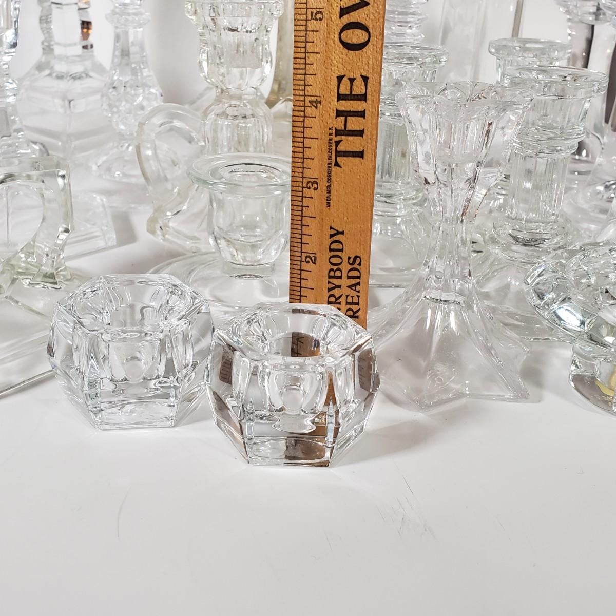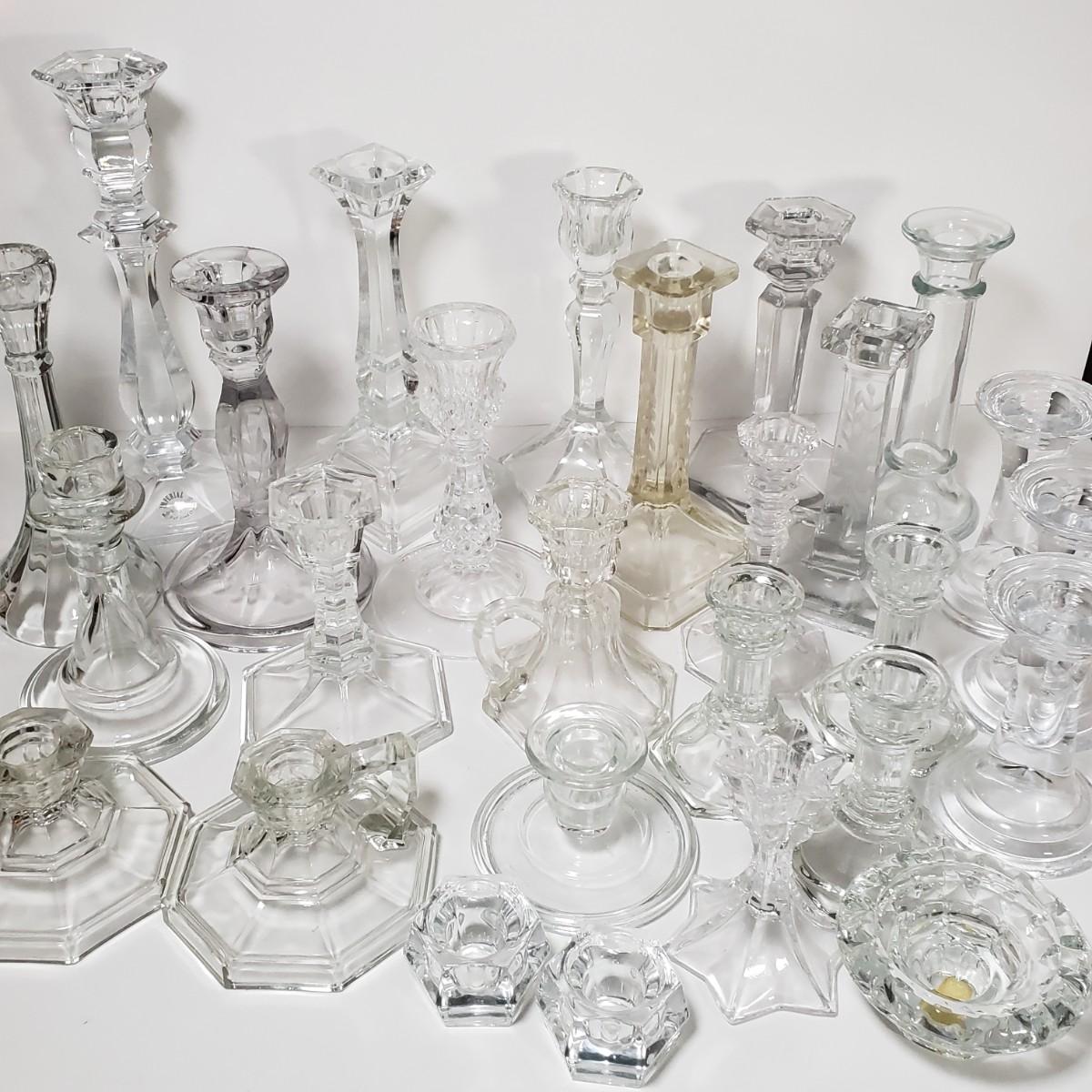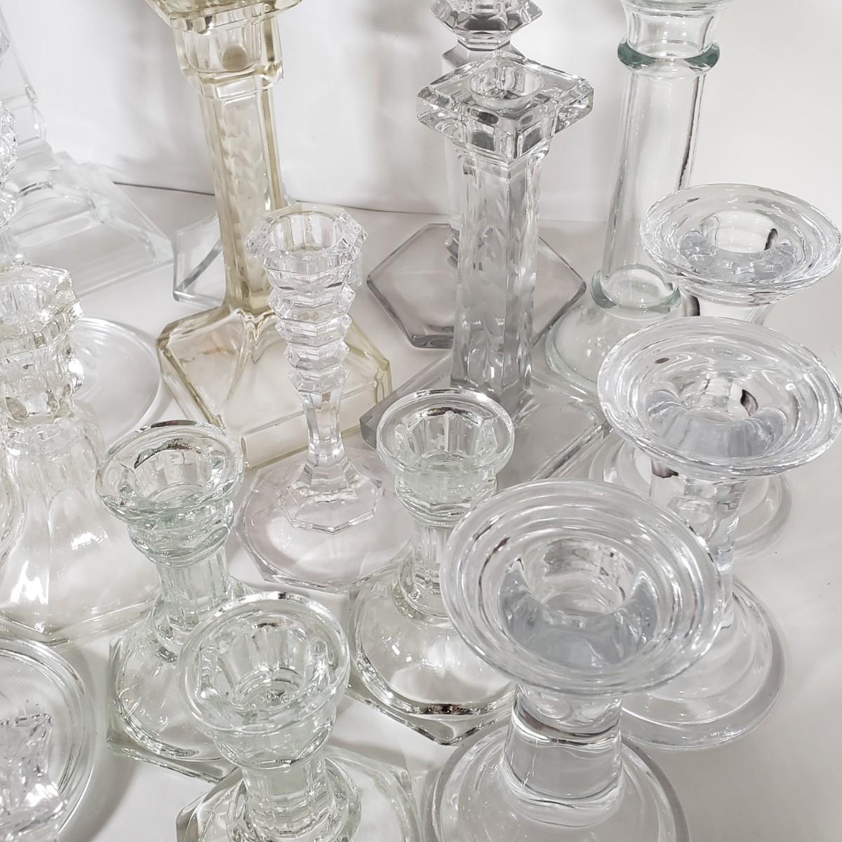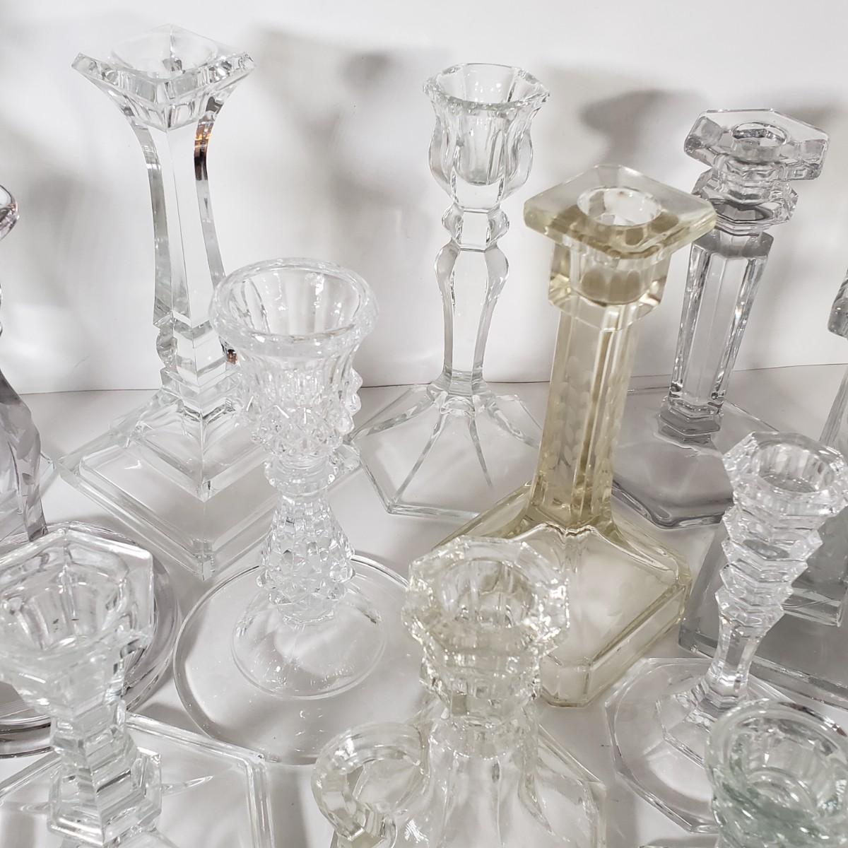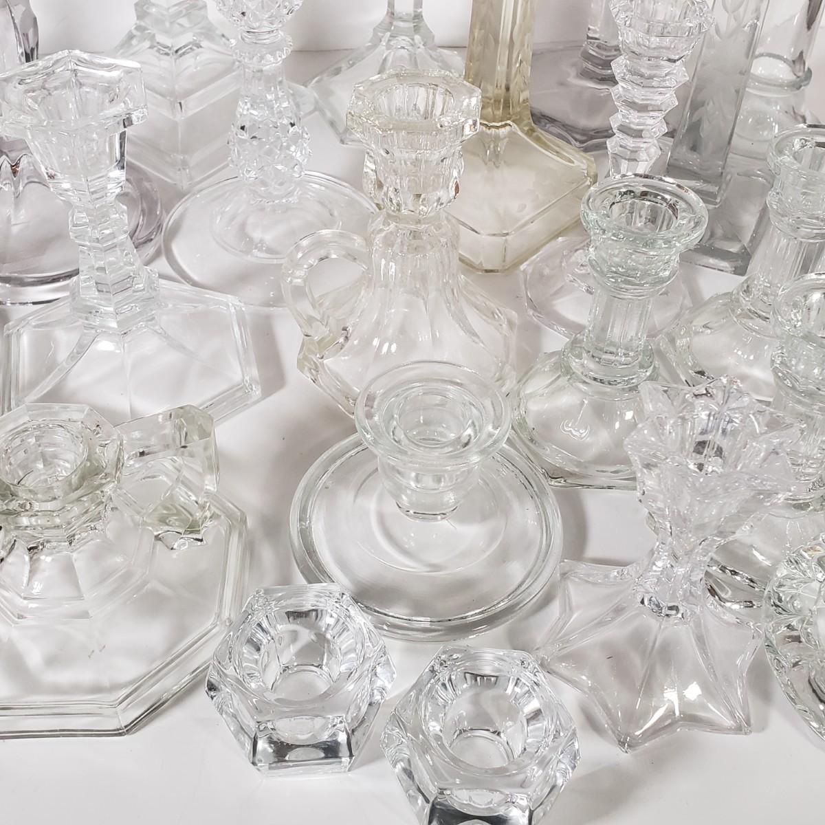 LOT 159L: Huge Assortment of Vintage Glass Candlesticks, All Types of Sizes & Shapes