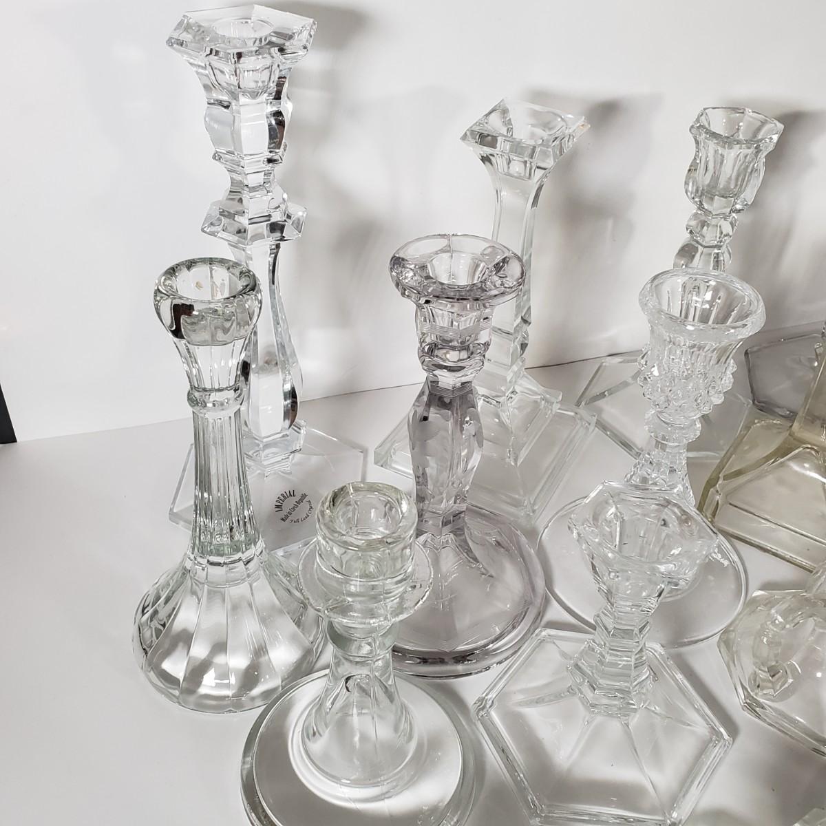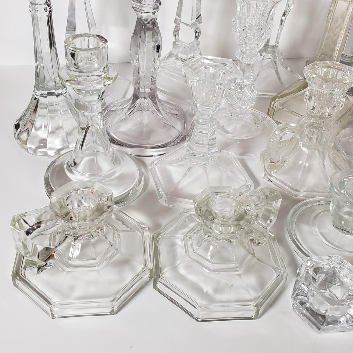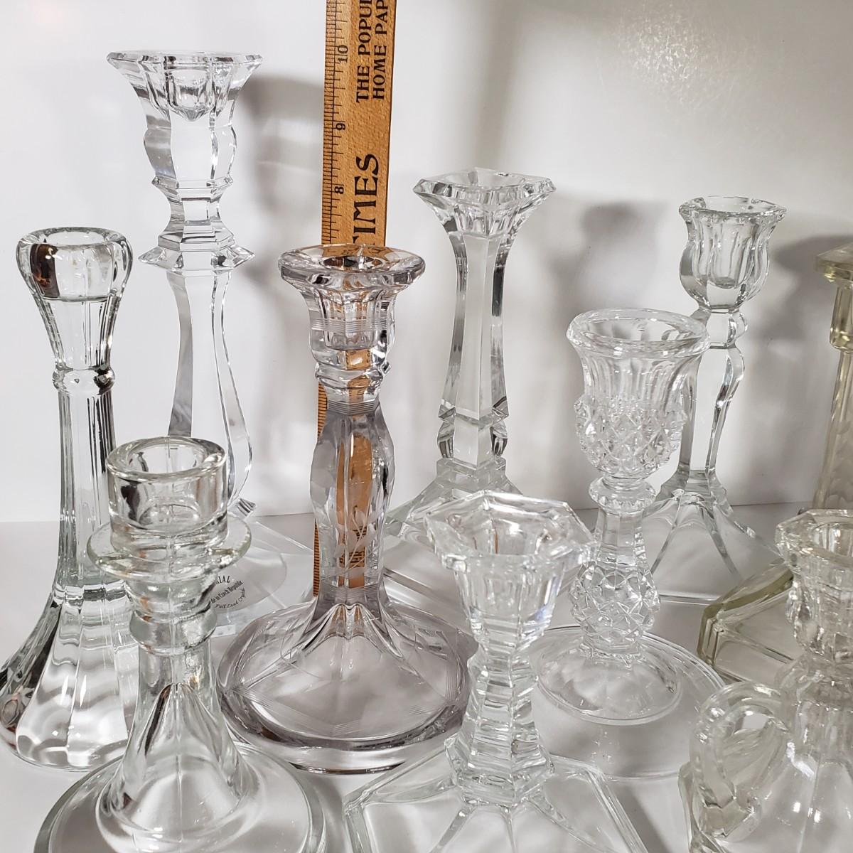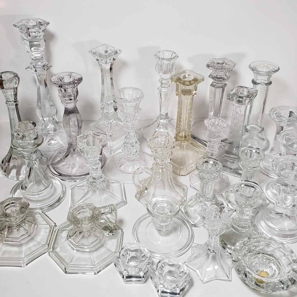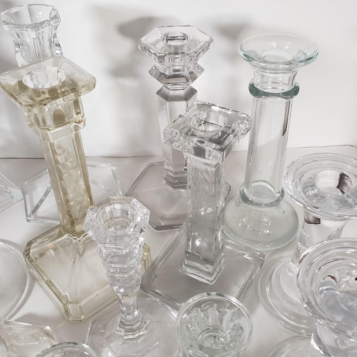 LOT 159L: Huge Assortment of Vintage Glass Candlesticks, All Types of Sizes & Shapes