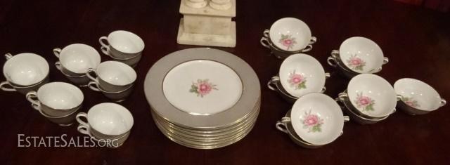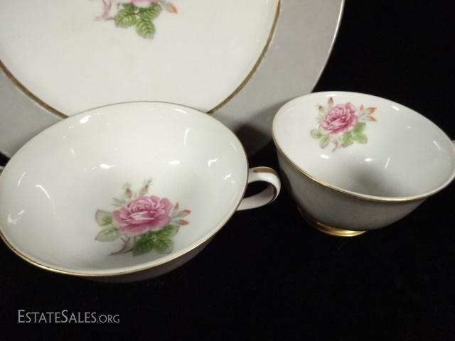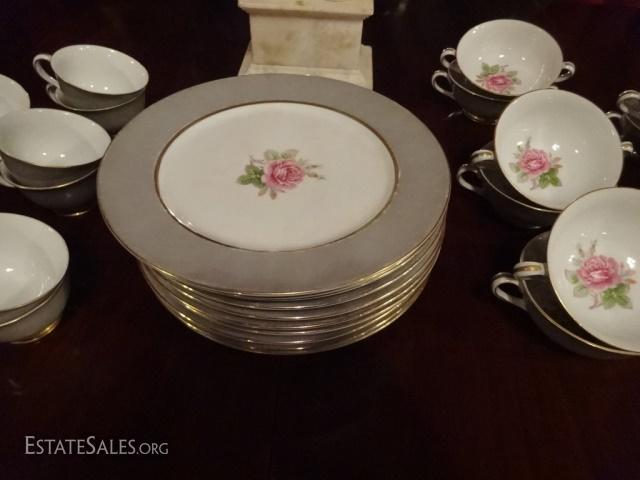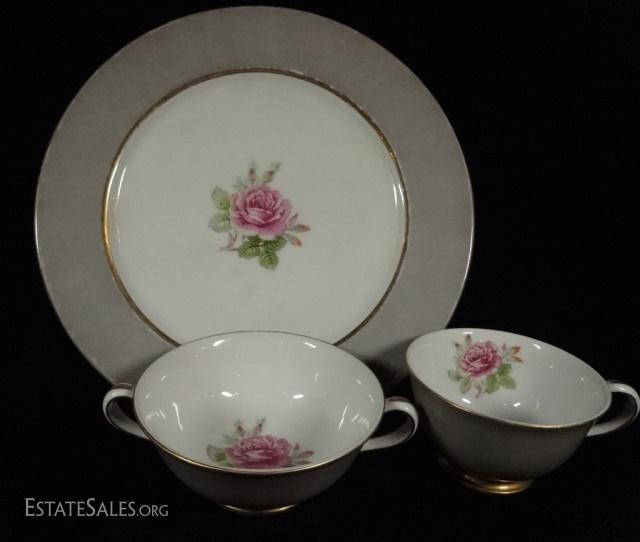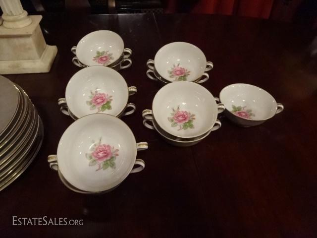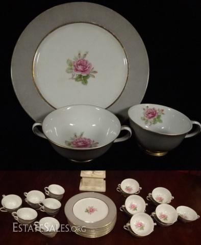 LOT 15A: 33 PC FUJI CHINA, MADE IN OCCUPIED JAPAN, INCLUDES 10 PLATES, 12 CUPS, AND 11 CREAM SOUP CUPS, SOME WEAR/DISCOLORATION