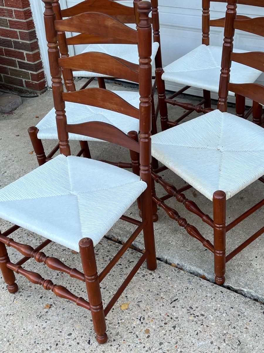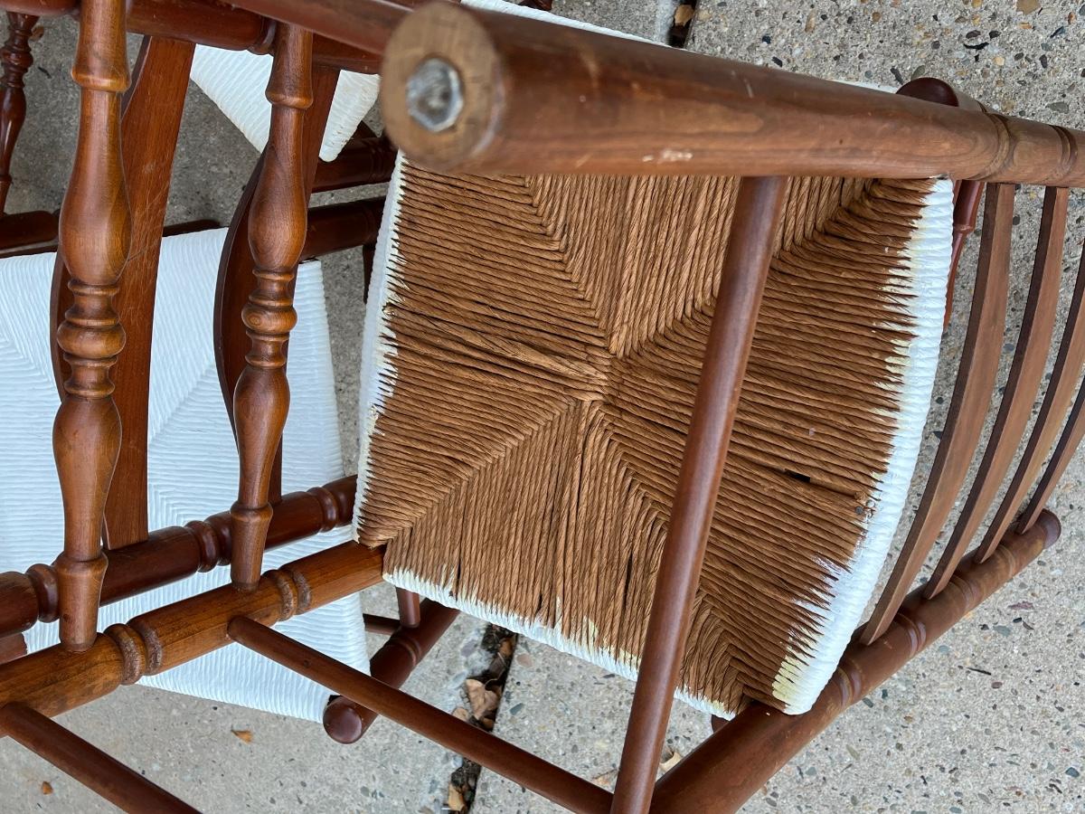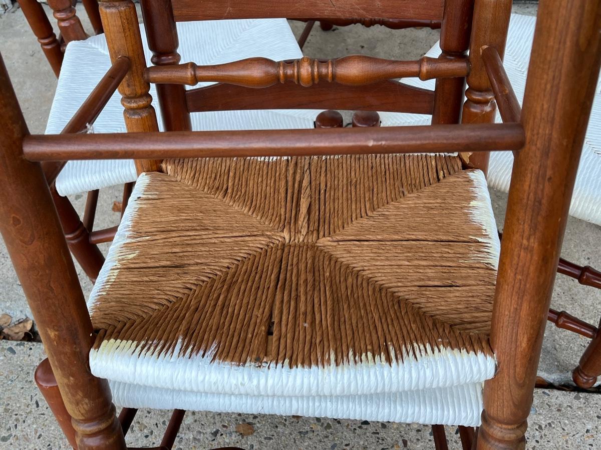 LOT 408G: Wood Dining / Kitchen Chairs w/ Painted Wicker Seats