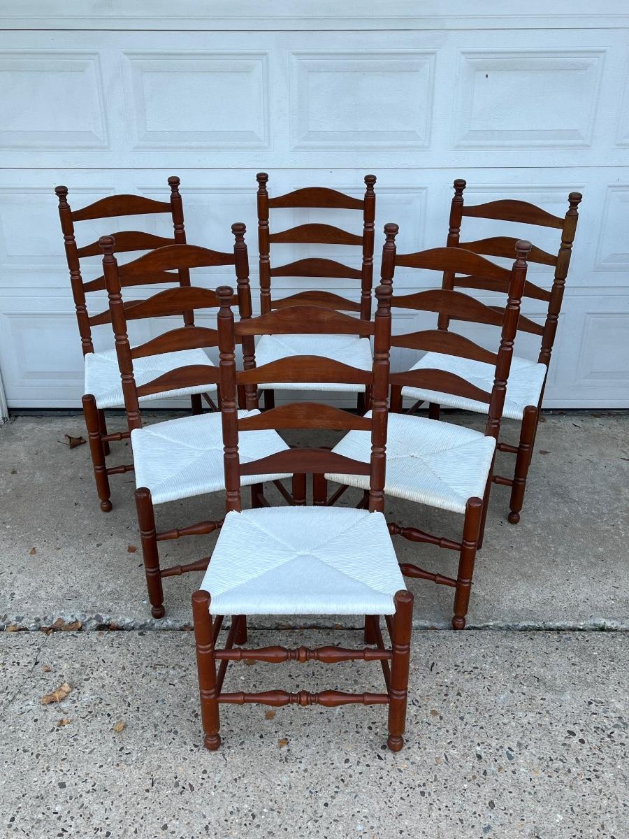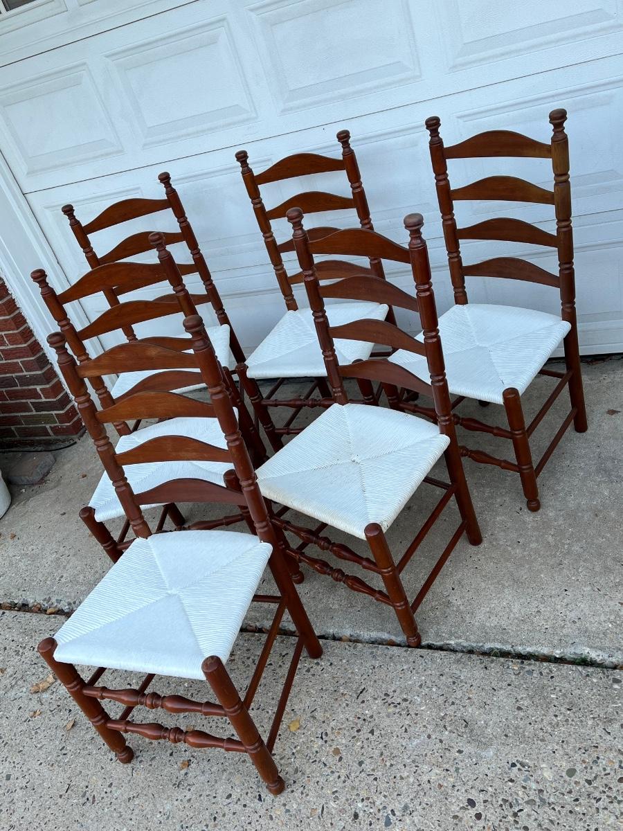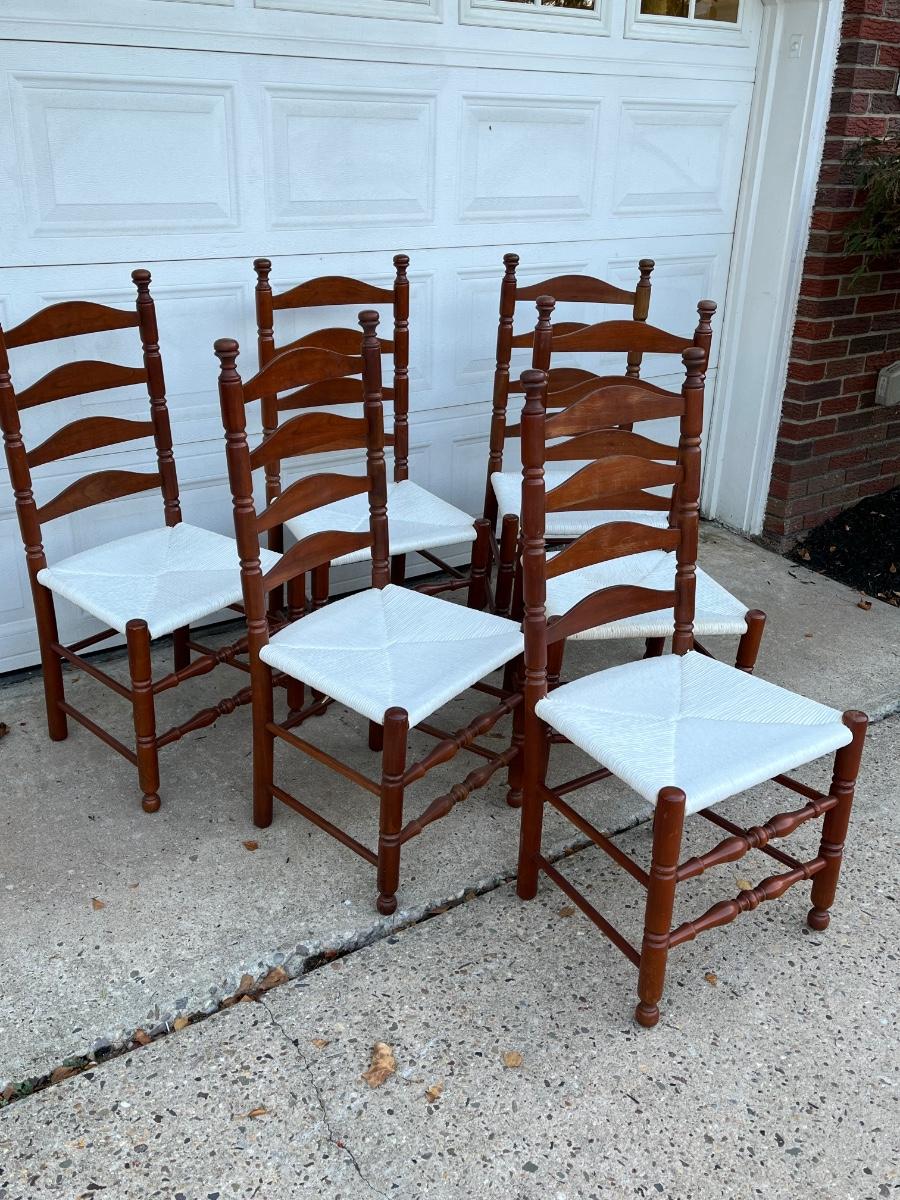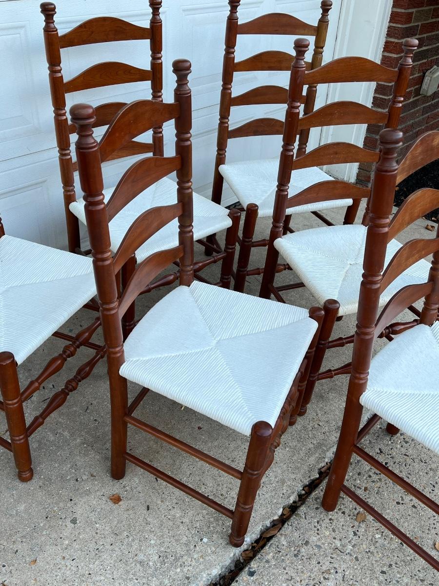 LOT 408G: Wood Dining / Kitchen Chairs w/ Painted Wicker Seats