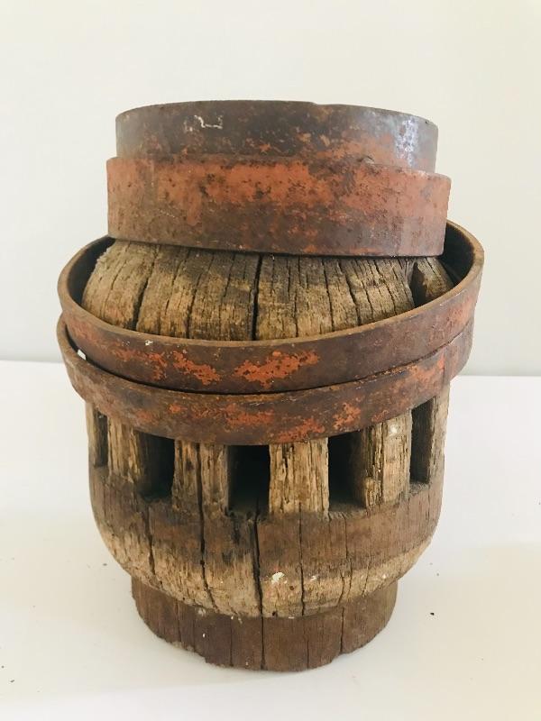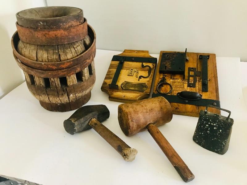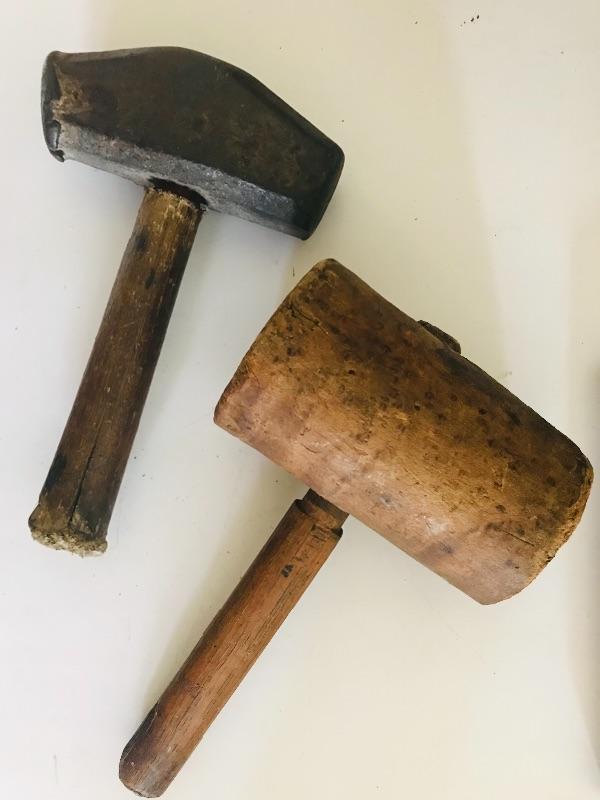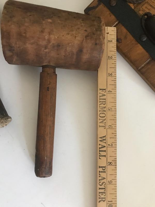 Lot 15L: Antique Wood Wagon Wheel Cog, Mallets and More