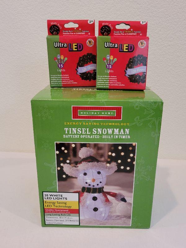 Lot 16: New LED Snowman + (2) Set of Wireless Wreath/Deco Lights