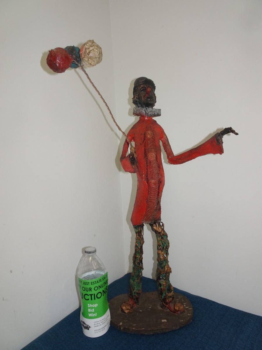 Vintage J. Pena Wire and Resin Sculpture Clown. 25" tall