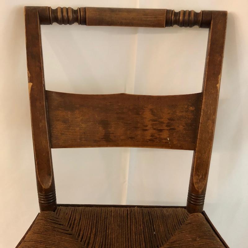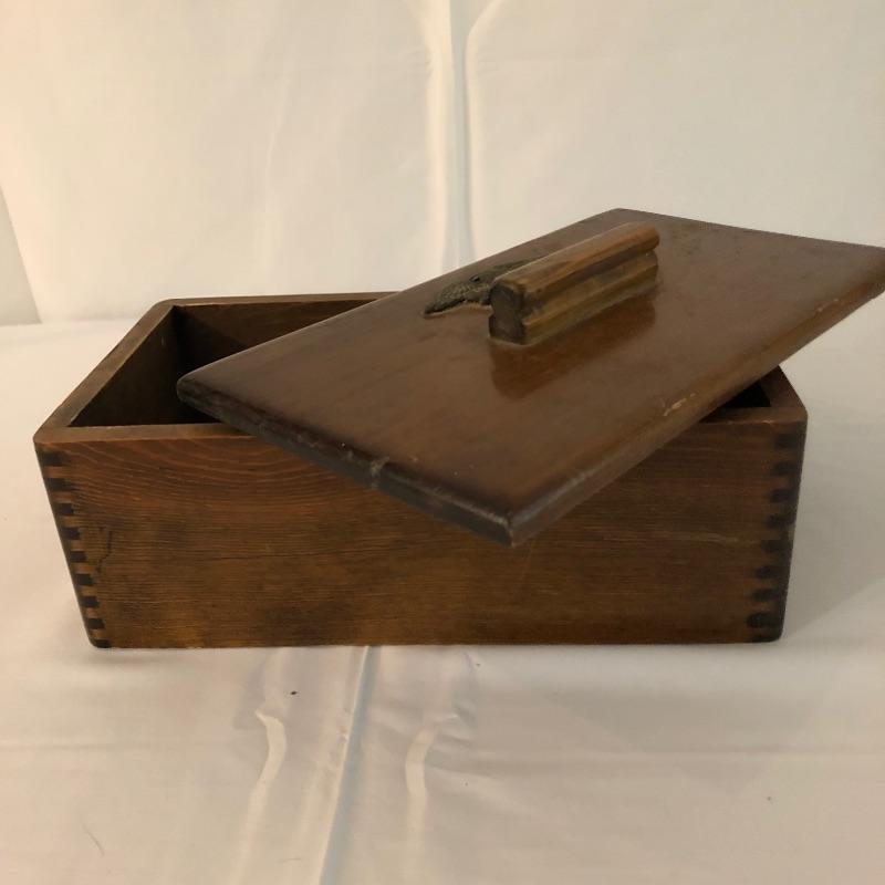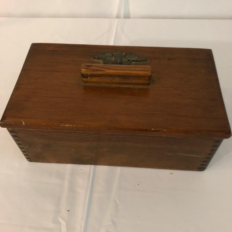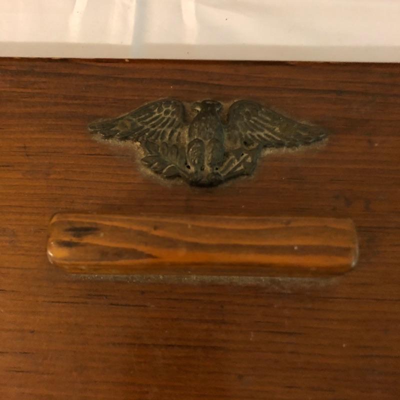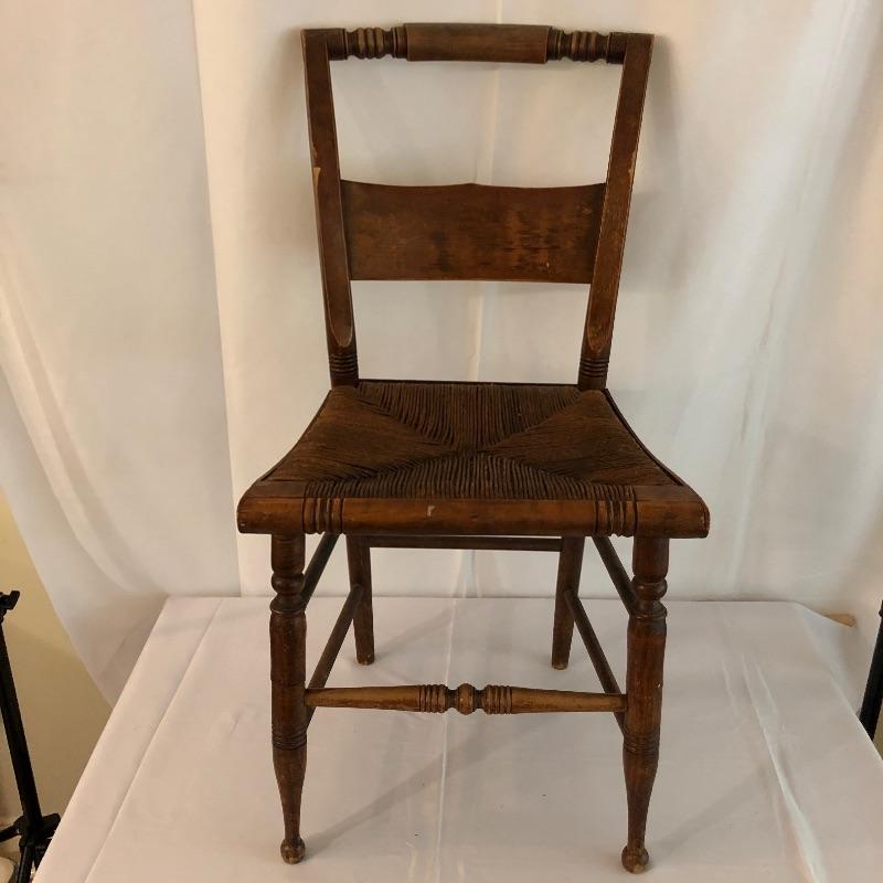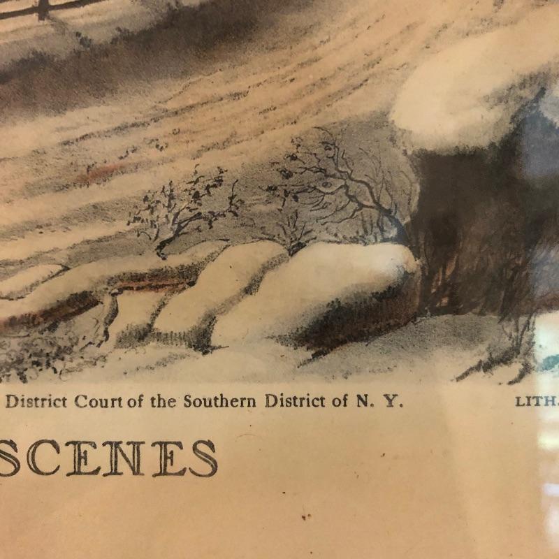 Some special vintage, possibly antique finds in this great lot that includes a Hitchcock style chair with a rush seat that is in amazing condition for its age; it has some minor marks and scuffs, but they truly just add to its historical rustic charm. It measures 14” deep x 17.5” wide x 36” tall with a seat height of 18”. The special small box has a bald eagle metal emblem on the lid and features dovetailed corners. Next we have a Wendell August hammered aluminum plate with a colonial times scene etched into it. Last but not least we have a F.F Palmer, American Winter Scenes print in a dark wood frame. Print measures 16.5” x 20.5”.