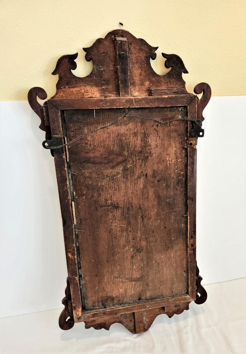 Early 19th century fruitwood mirror - primitive style - needs a bit of love. 25" tall, 13" wide at widest point.