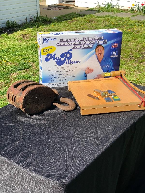 Lot 16 - Antique Pulley, Paper cutter, "My Pillow", Collector Knife/Lighters