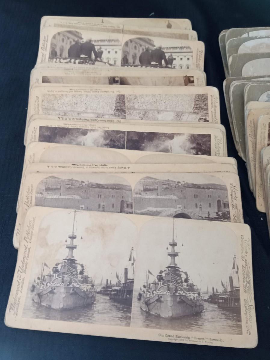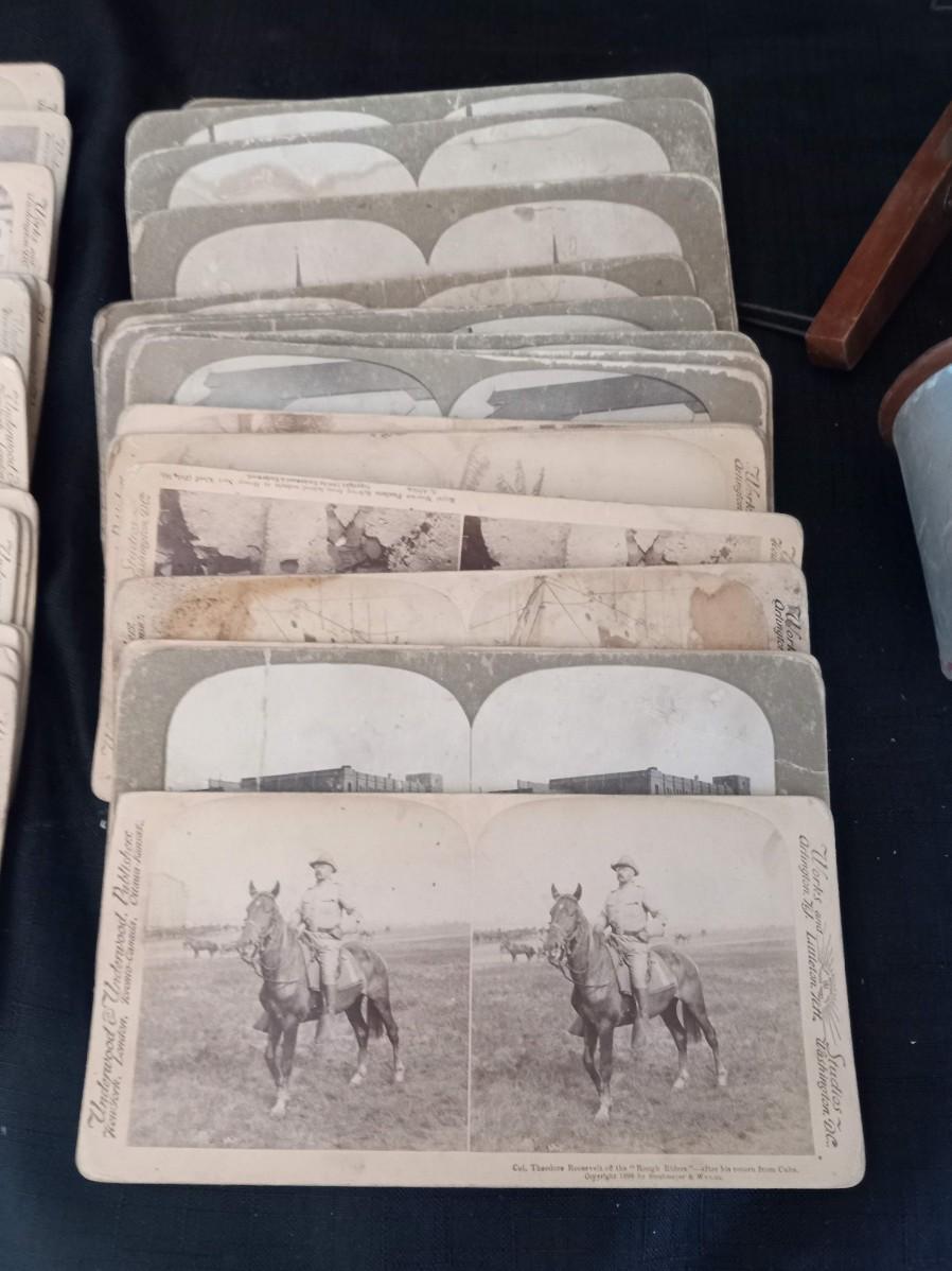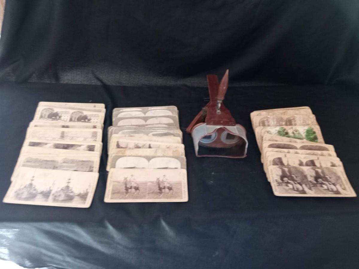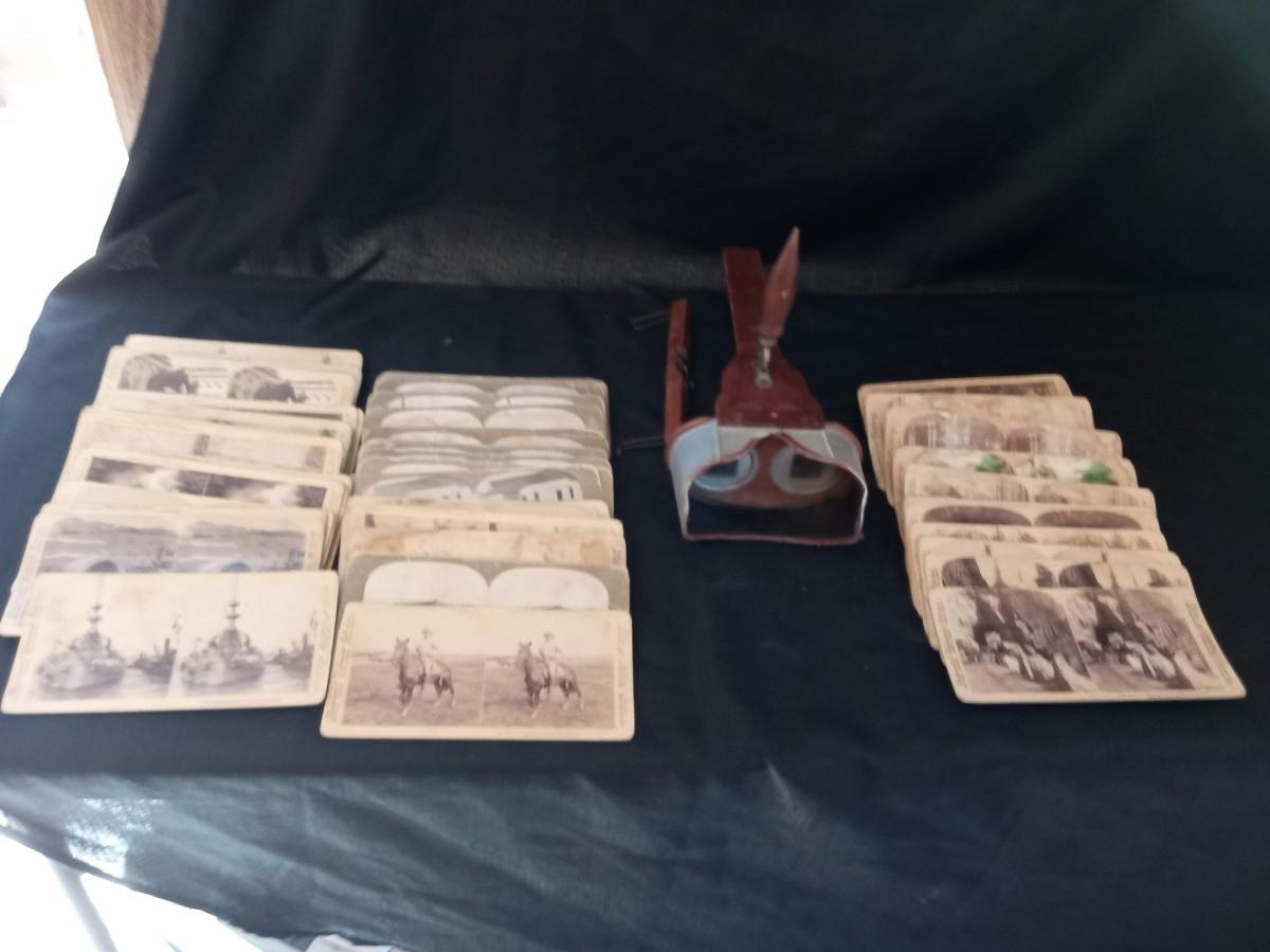 LOT 16 ANTIQUE STEREOVIEWER AND MANY MILITARY  STEREOSCOPIC PHOTOS