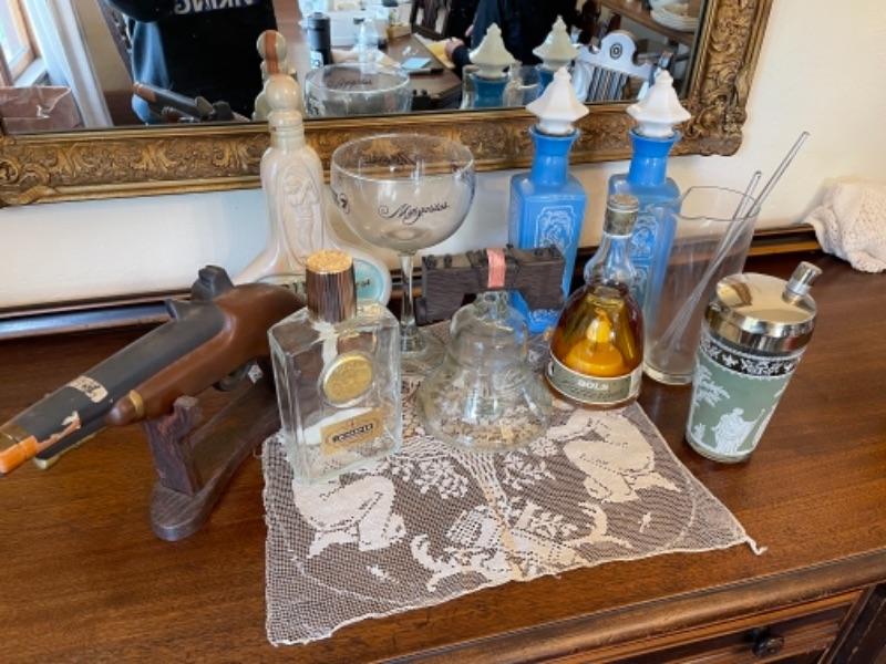 Lot 16. Assorted liquor decanters and martini shakers--$20