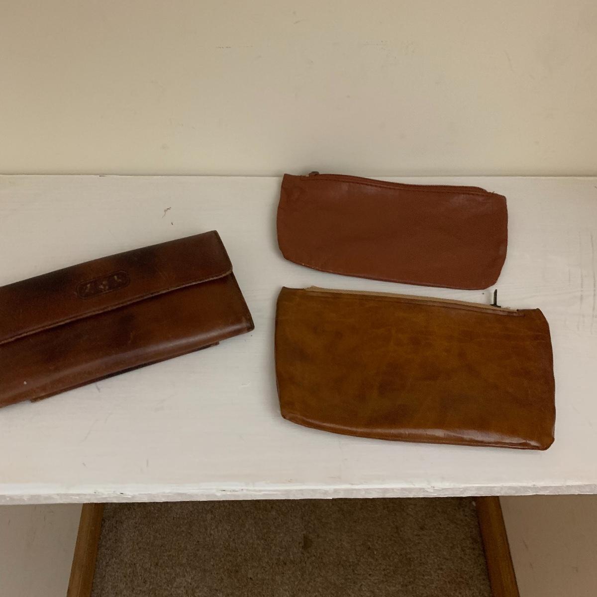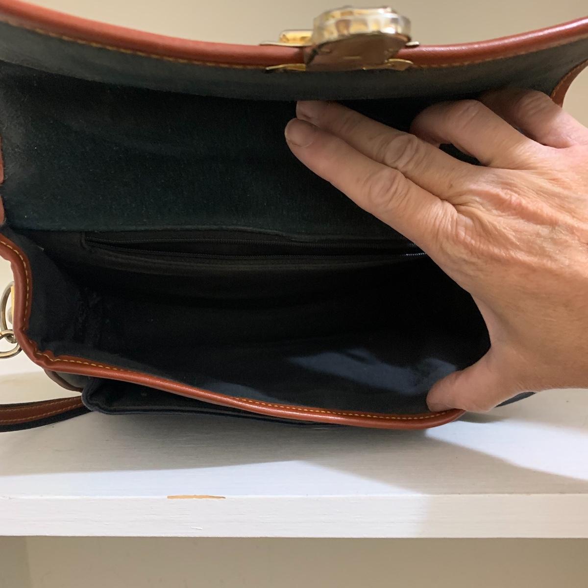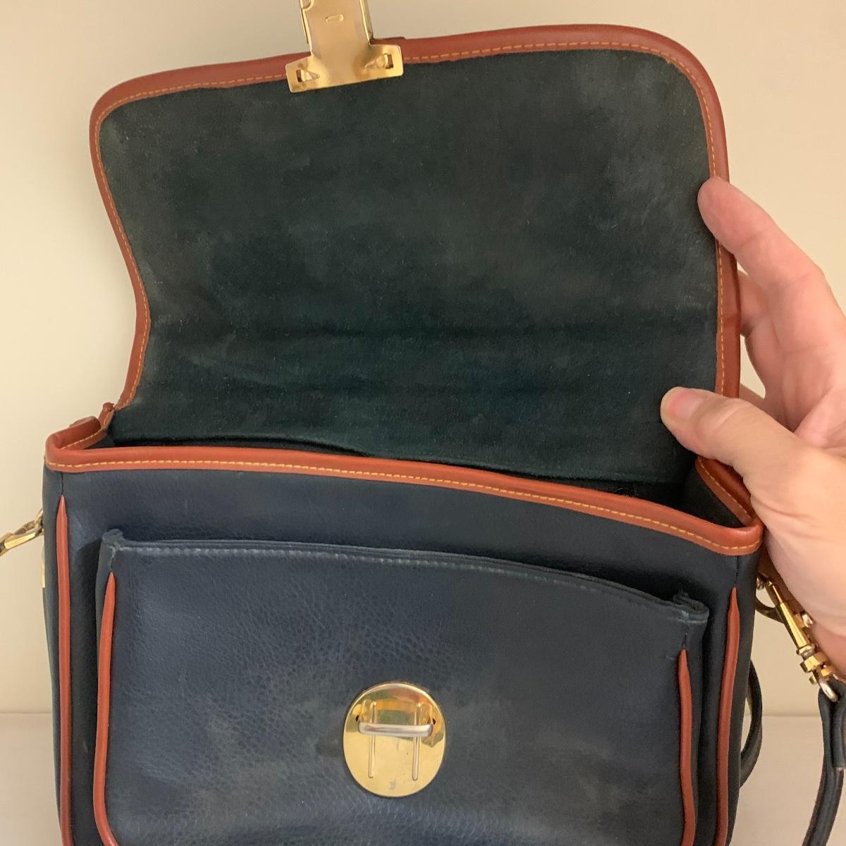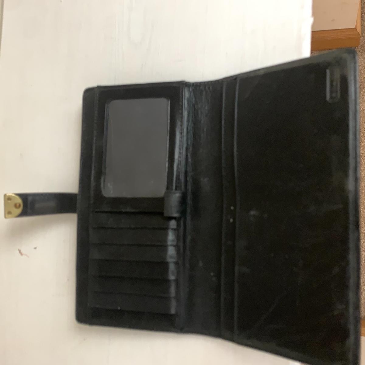 Lot contains three purses and four wallet/pouches. The Dooney & Bourke is a navy blue and camel leather with brass color accents, measures 12” x10” x 4” and is in good condition. Cannot verify if authentic. The black coach wallet is a super silky leather classic also in good condition. Remaining items include a faux leather Nine West handbag, a leather utility bag, two faux leather pouches and one more brown leather wallet with plenty of storage and also in good condition. Shipping available.