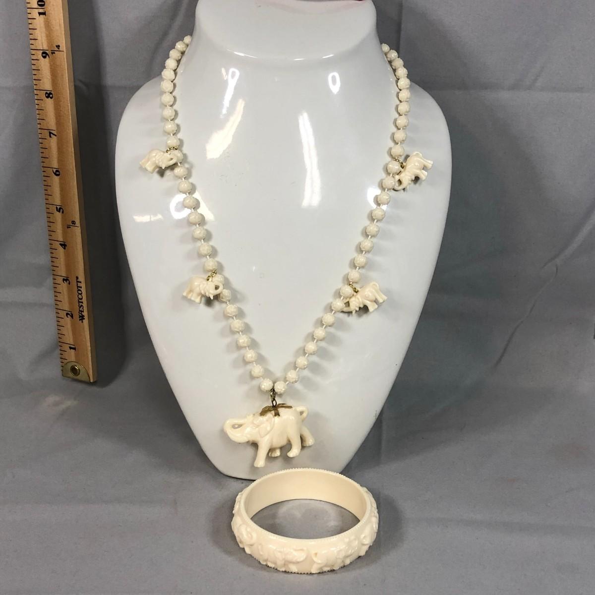 Lot 16 - Elephant Necklace and Bangle Bracelet