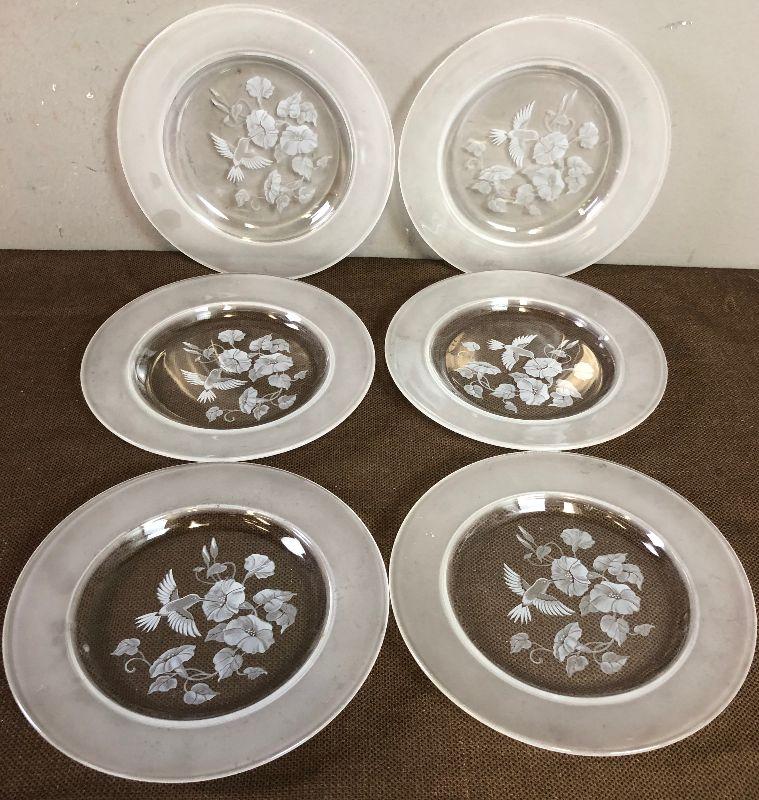 (6) Fabulous Etched Glass Plates for desert or salad. NICE!