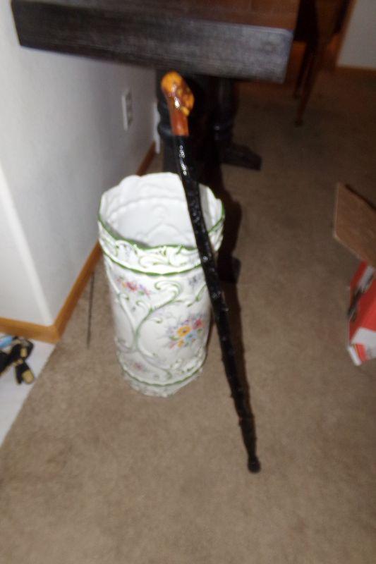WALKING STICK IS WOOD THAT HAS BEEN SANDED AND TREATED WITH POLY