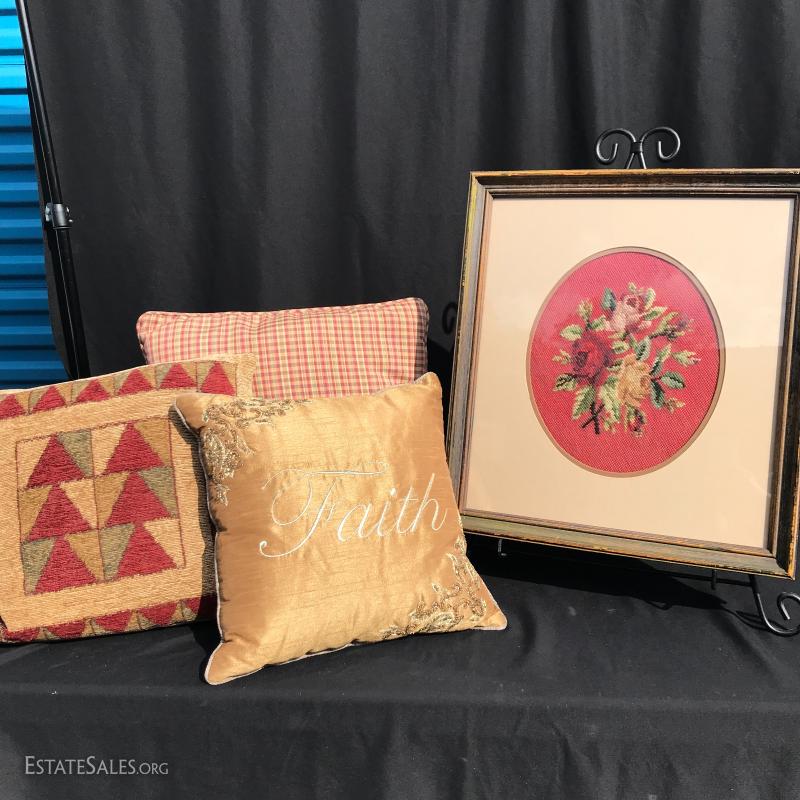 Lot 16 - Framed Needlepoint and Pillows
