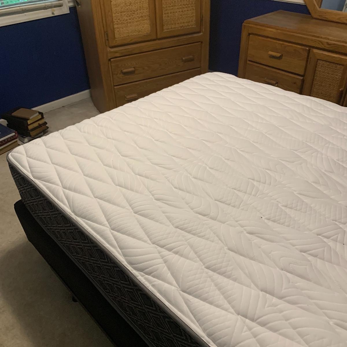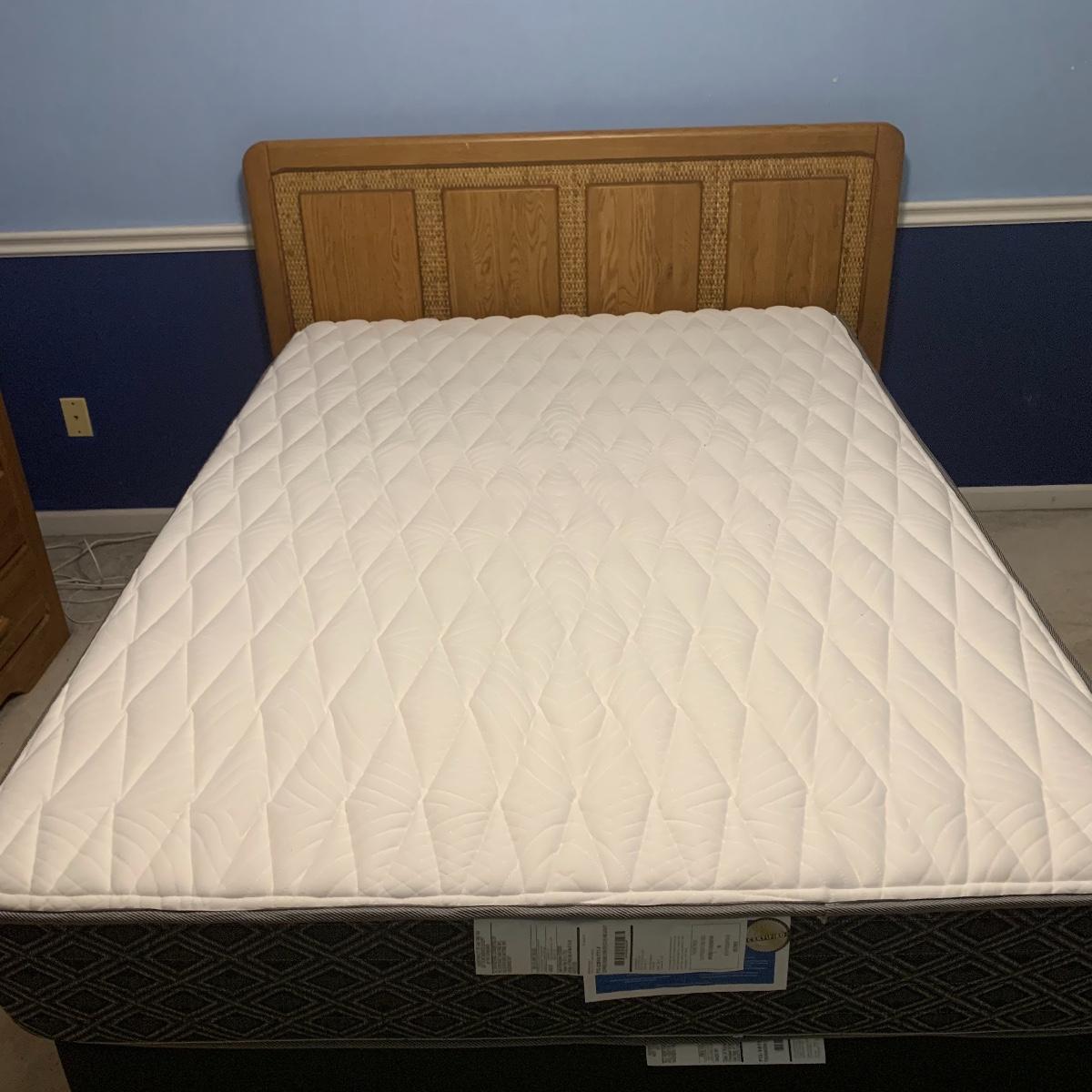 Lot 16 - Full Size Headboard, Mattress & Organizing Bins