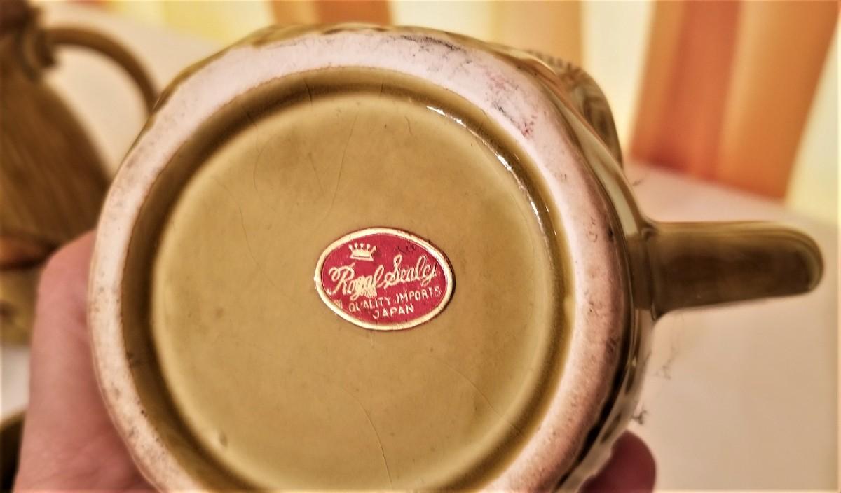Done in the famed "avocado green" of the '60s, here is a great mid-century coffee set - complete in good condition. You get the pot, creamer/sugar, and 4 mugs. Pot is 9" tall, mugs 4" tall. Original "Royal Sealy" labels on the bottom.