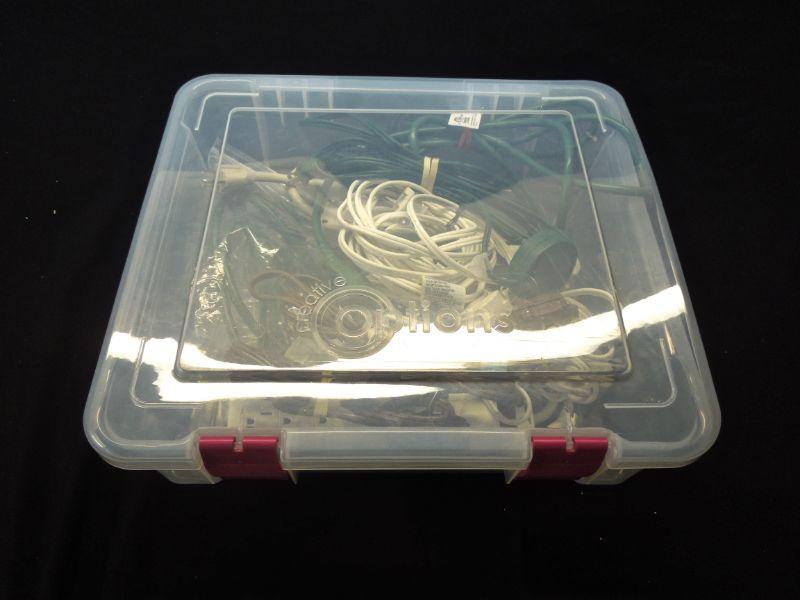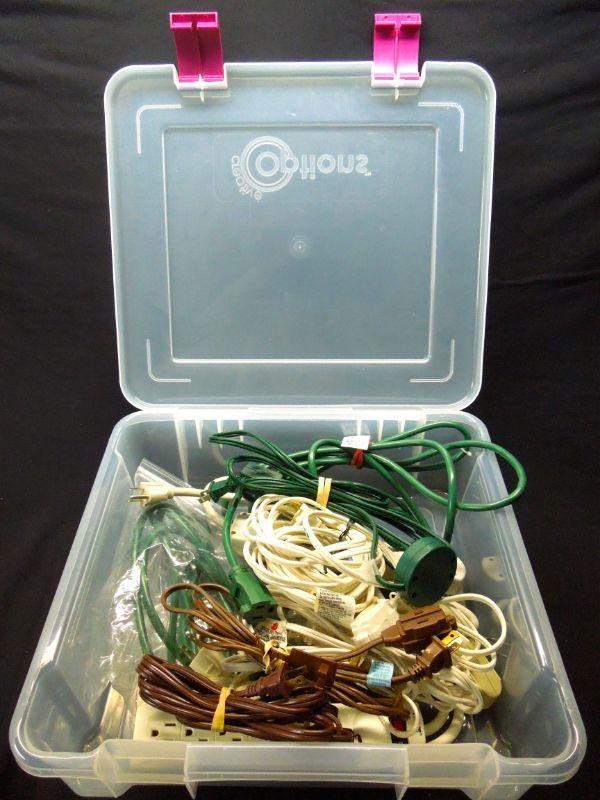 LOT 16: Group of Assorted Power and Etension Cords in Storage Box