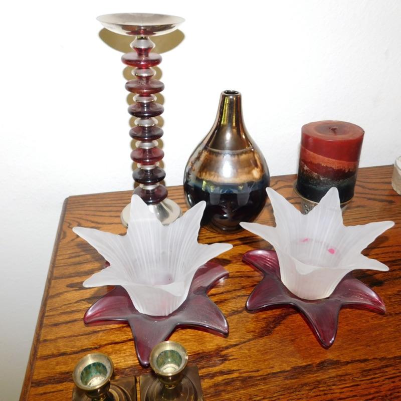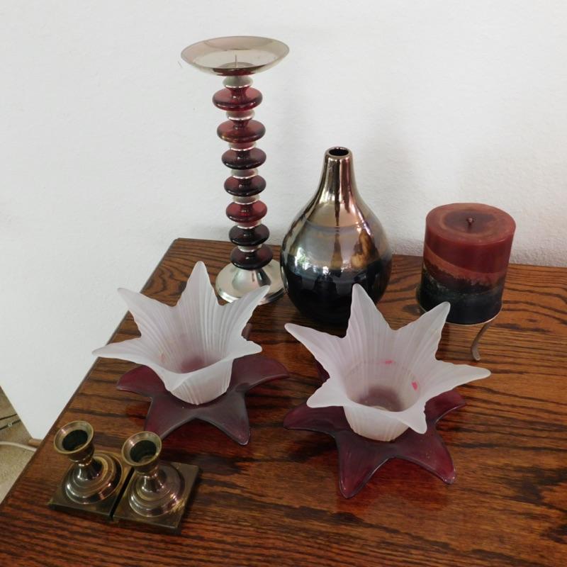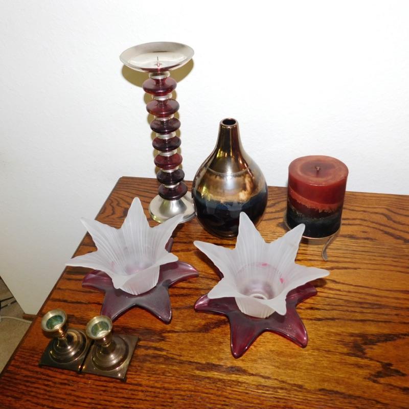 LOT 16 Home Decor 8 candle holders and 1 Brown Vase